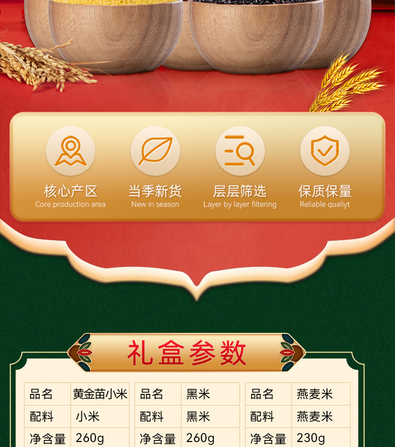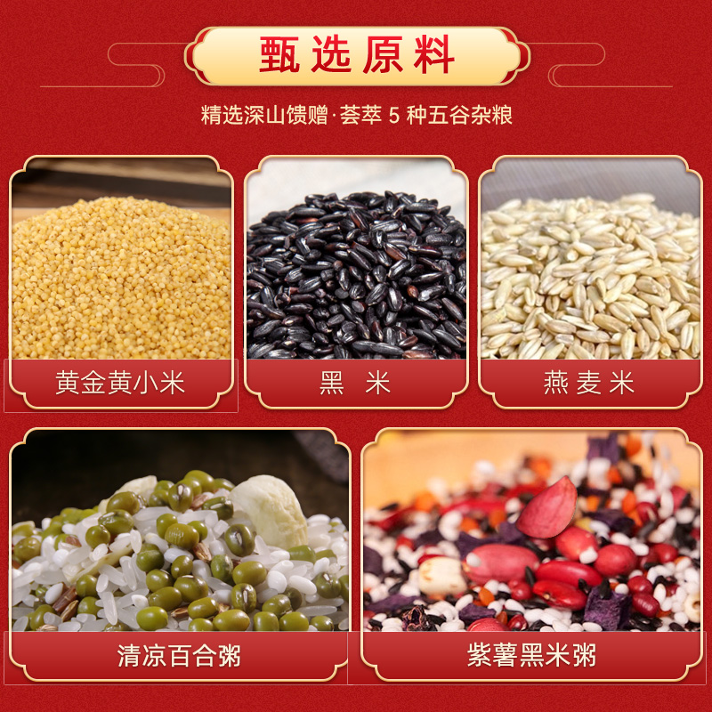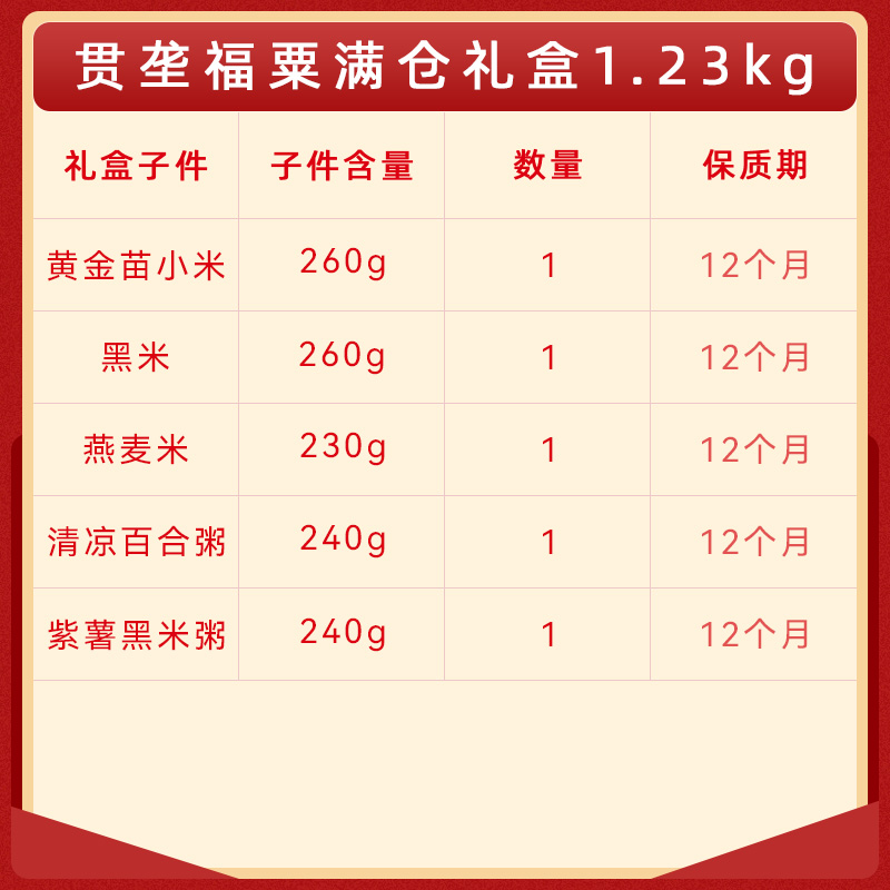 贯垄福粟满仓礼盒1230g【黄金苗小米、黑米、燕麦米、清凉百合粥、紫薯黑米粥】