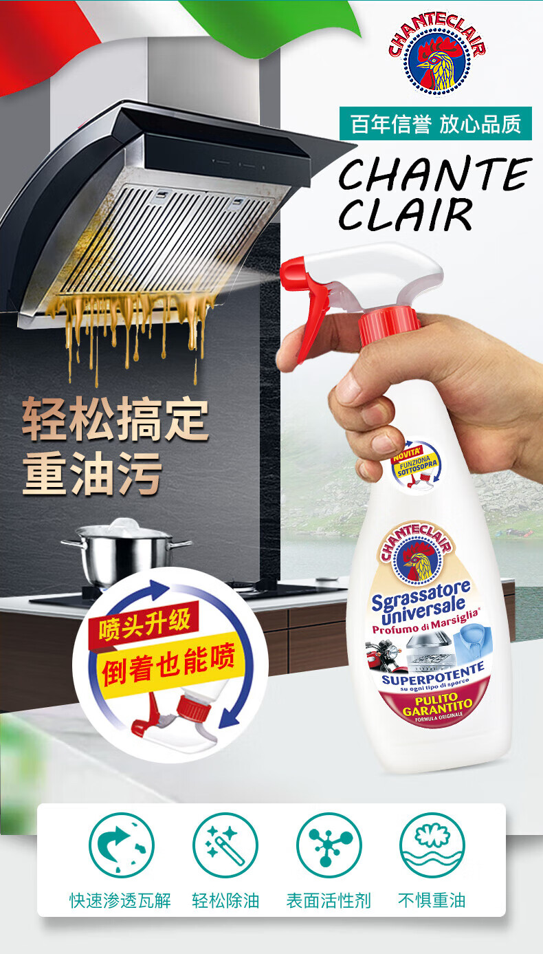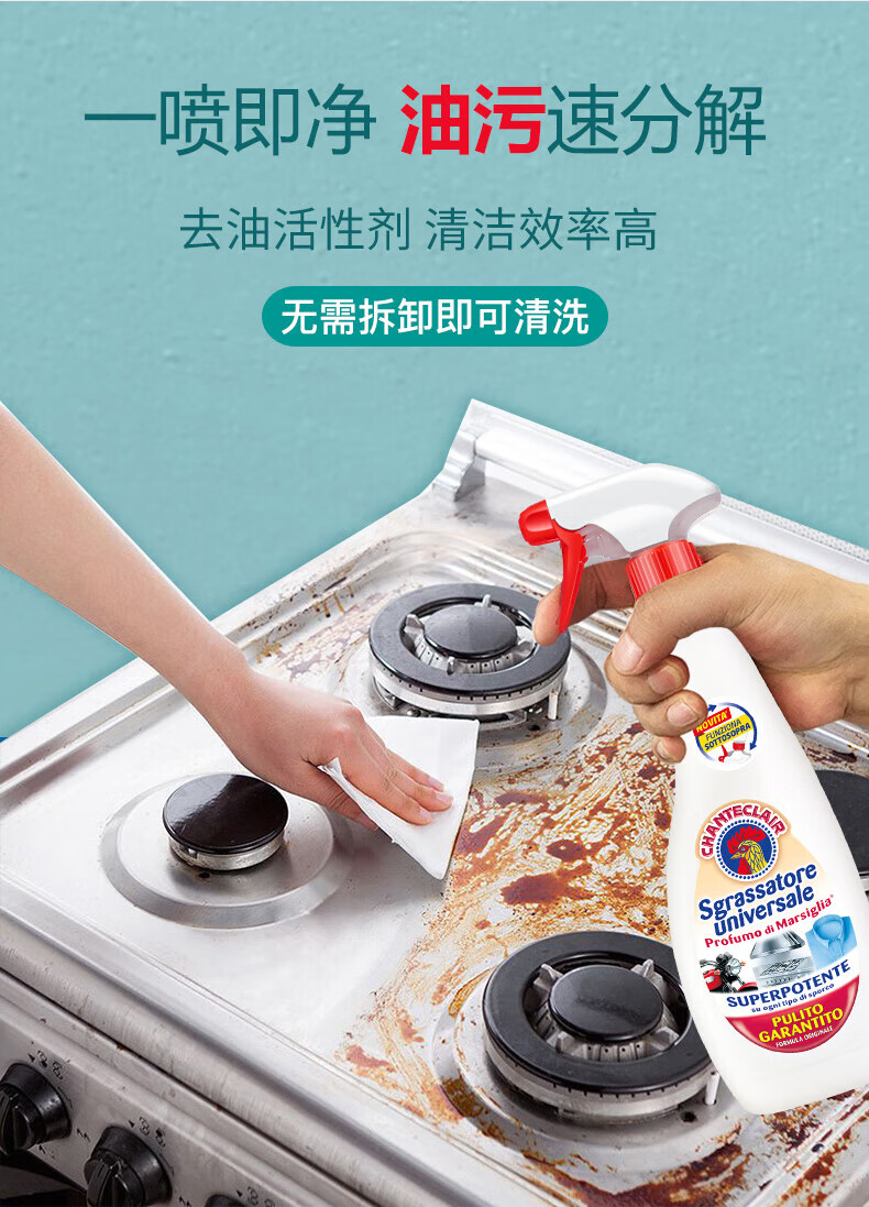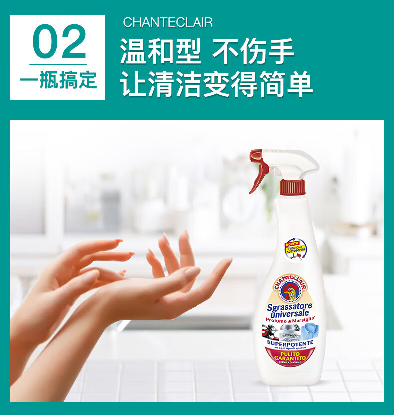 代发大公鸡管家 意大利进口 多能油污净(马赛皂香型)500ml*3瓶套装 AJC048012
