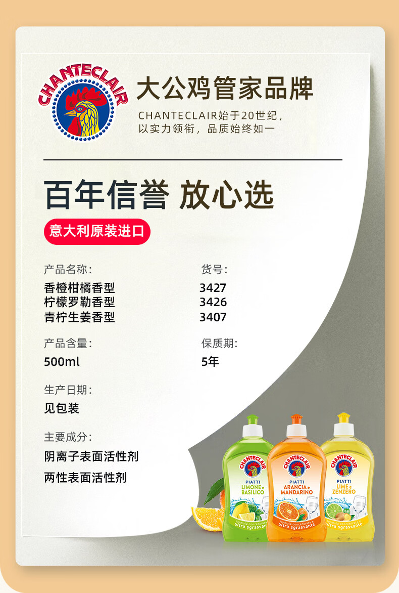 代发大公鸡管家 意大利进口 柠檬+石榴洗洁精500ml*2瓶组合 AJC041162