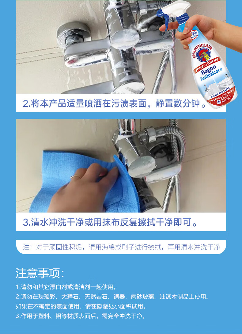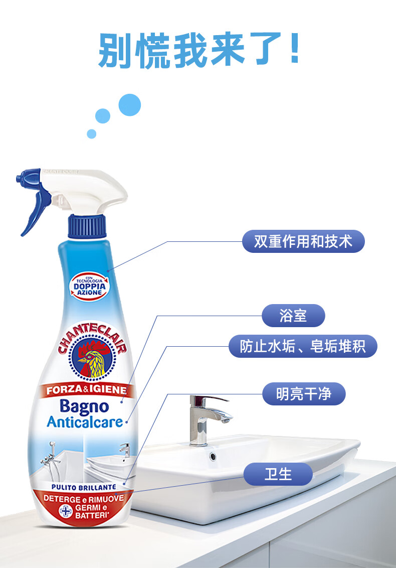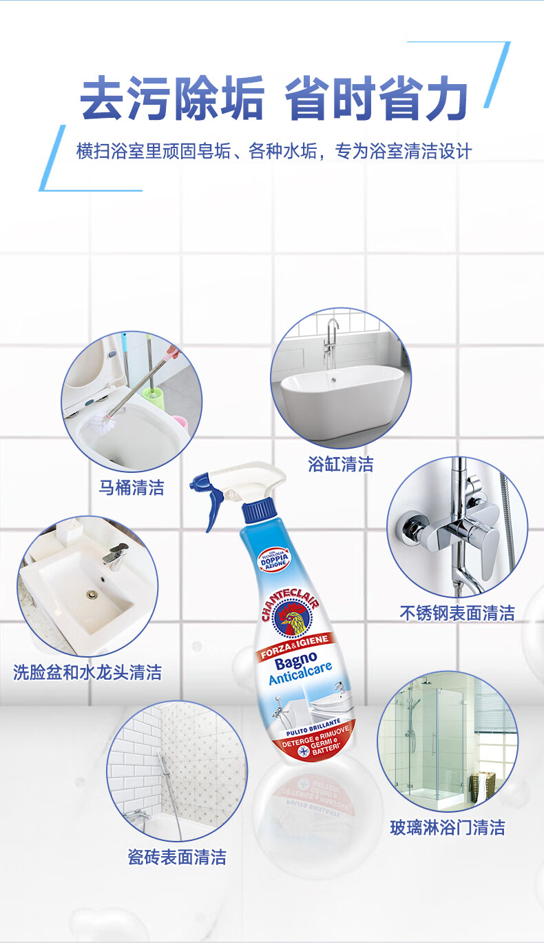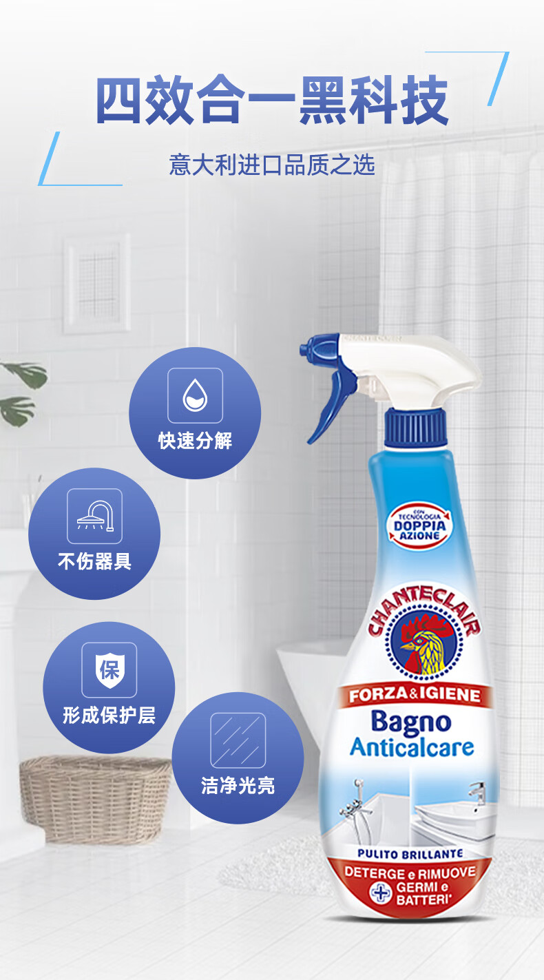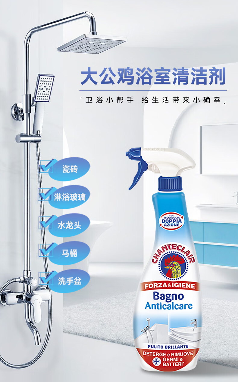 代发大公鸡管家 意大利进口 浴室清洁剂 卫浴清洁去除水垢625ml AJC042095