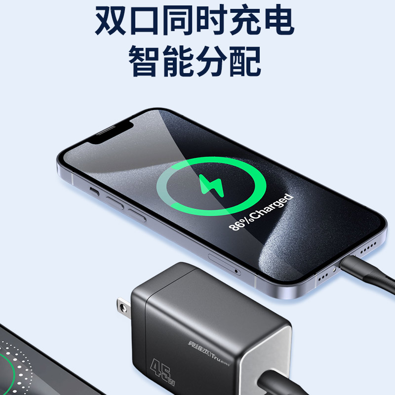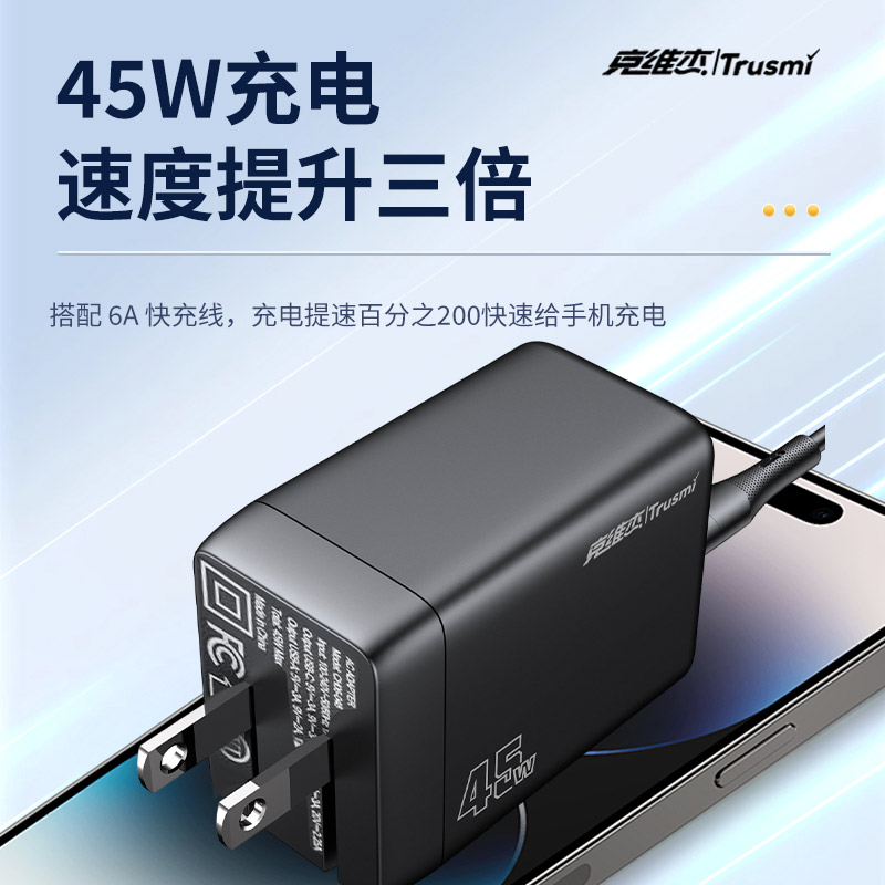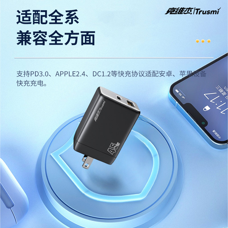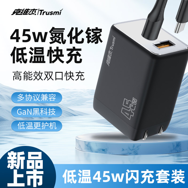 代发克维杰PD45W A+C迷你氮化镓快充充电器 +C C 60W数据线(US)黑色WP-U33