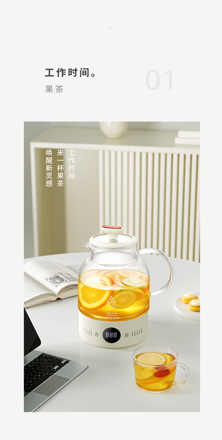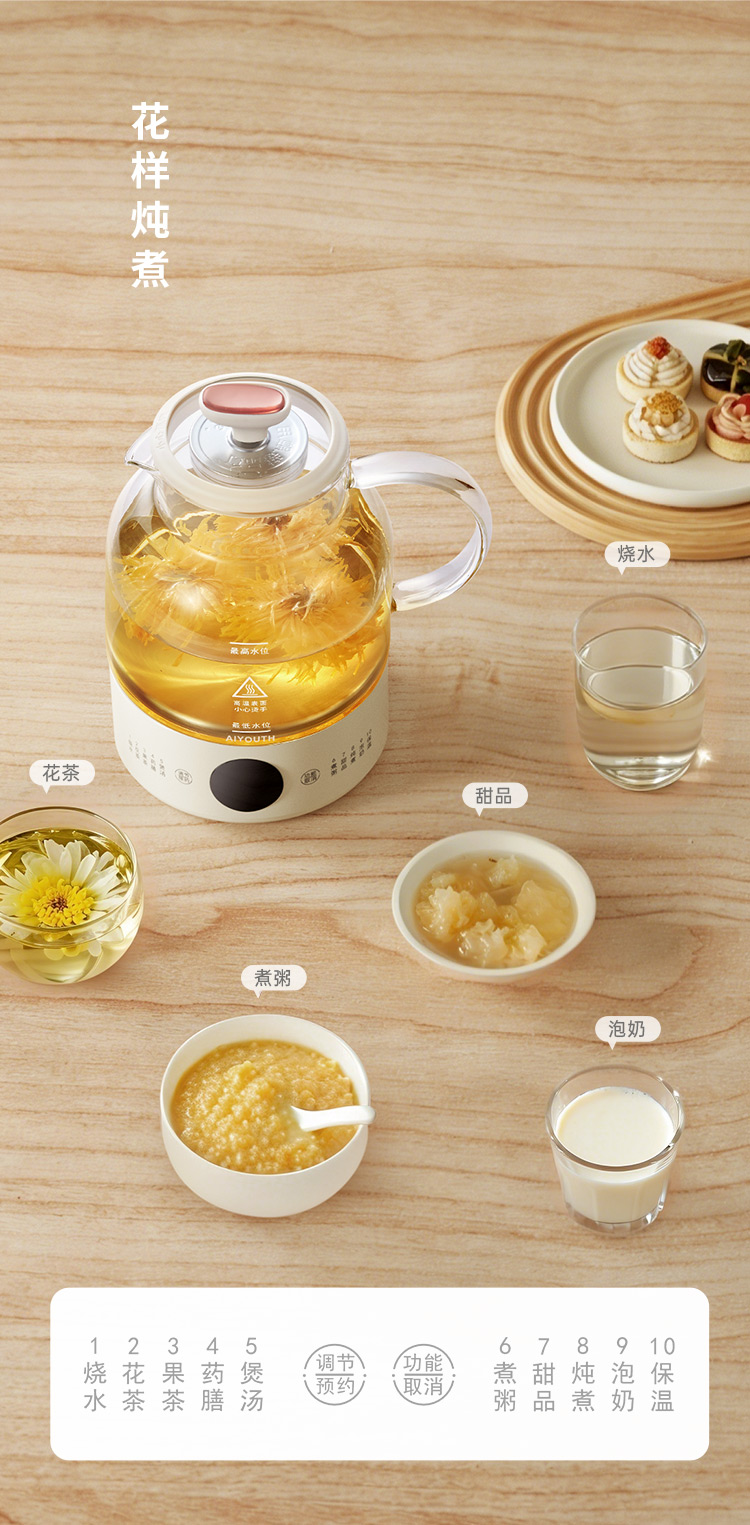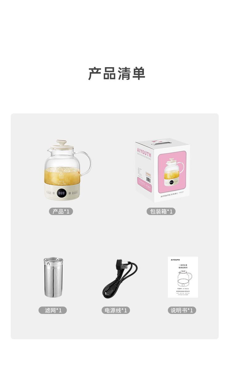 代发艾青春一体养生壶 AI-YSH216(带滤网) 白色 1L