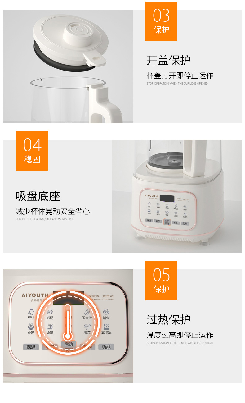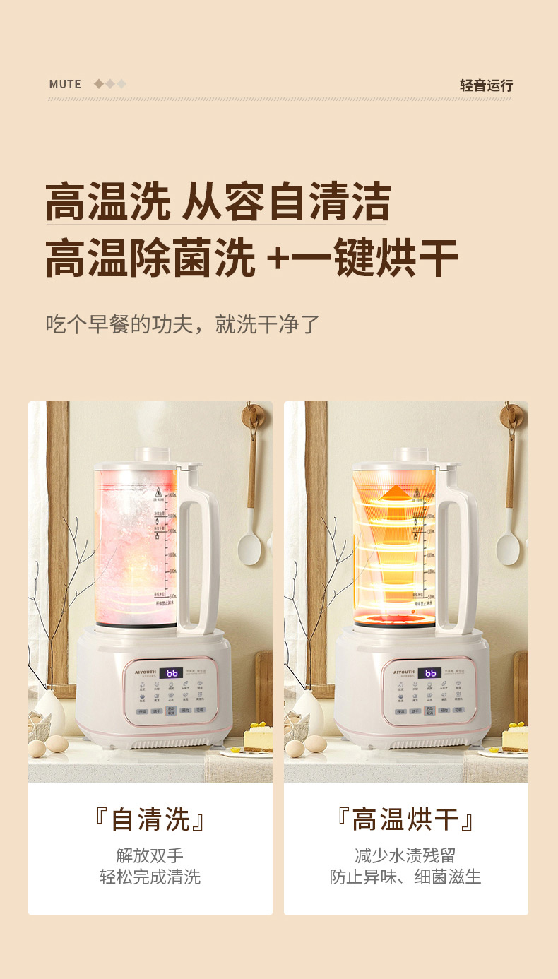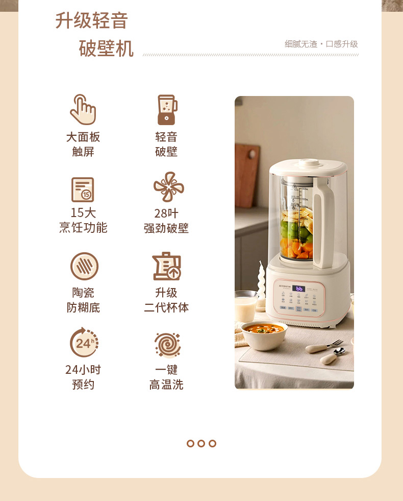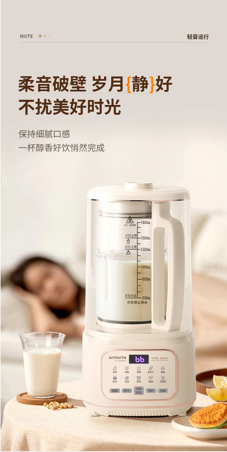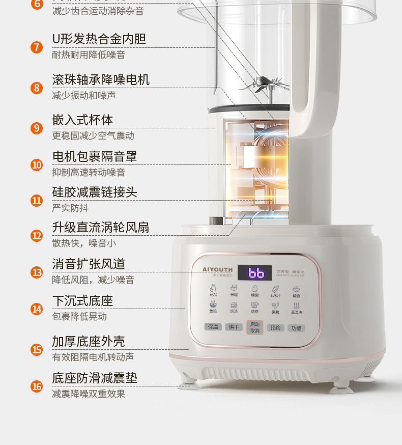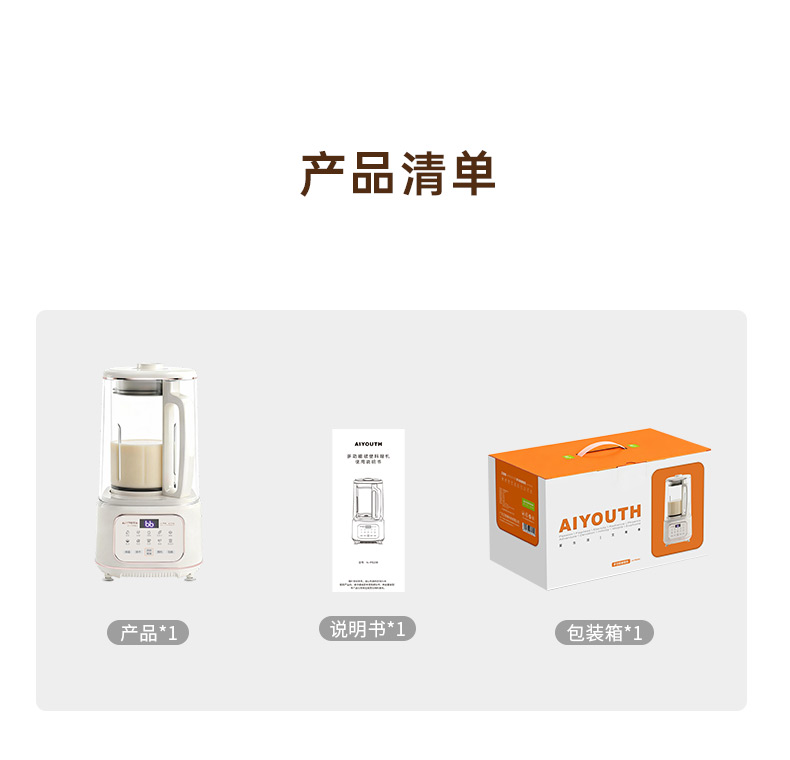 代发艾青春多功能破壁料理机 AI-PB208大容量1.8L 轻音破壁机