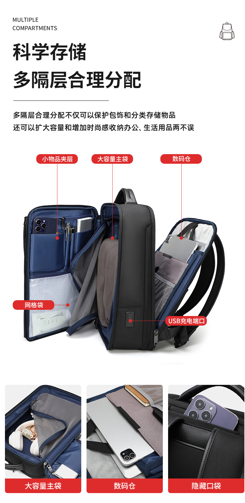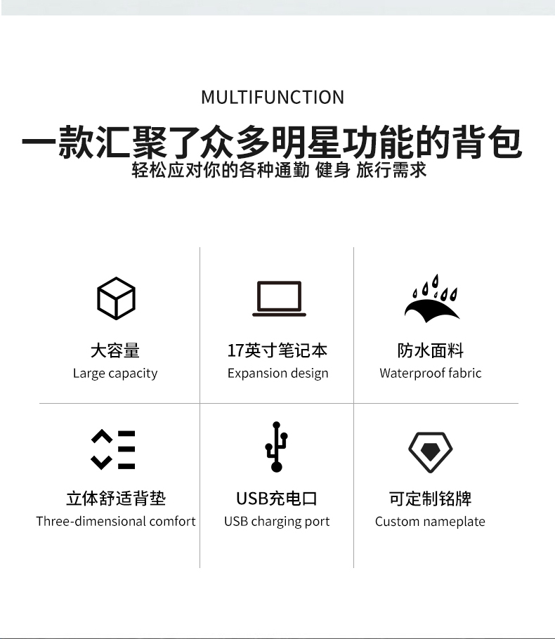 当前位置:首页 > 箱包服饰 > 功能箱包 > 双肩背包/电脑包/商务包 > 米茄美商务大容量多功能双肩包旅行背包电脑书包M069