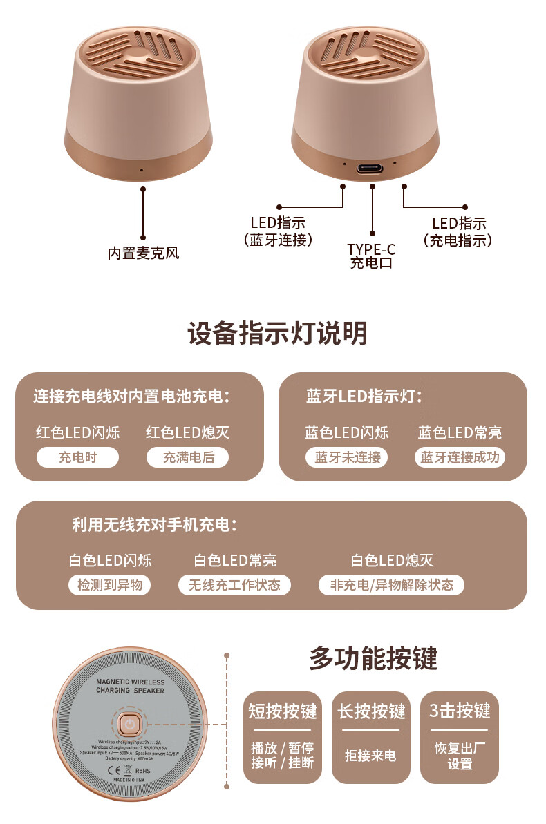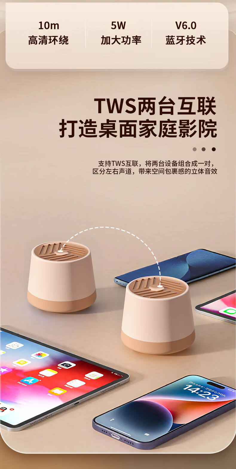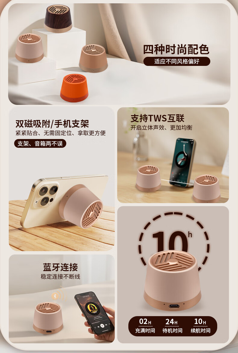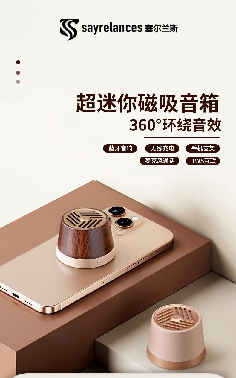 代发塞尔兰斯(Sayrelances)蓝牙6.0磁吸蓝牙mini音响 流沙金