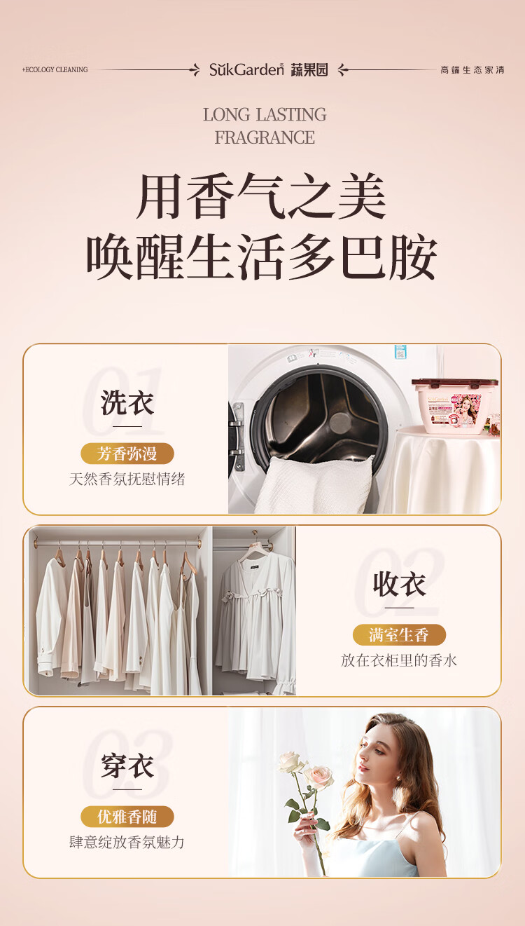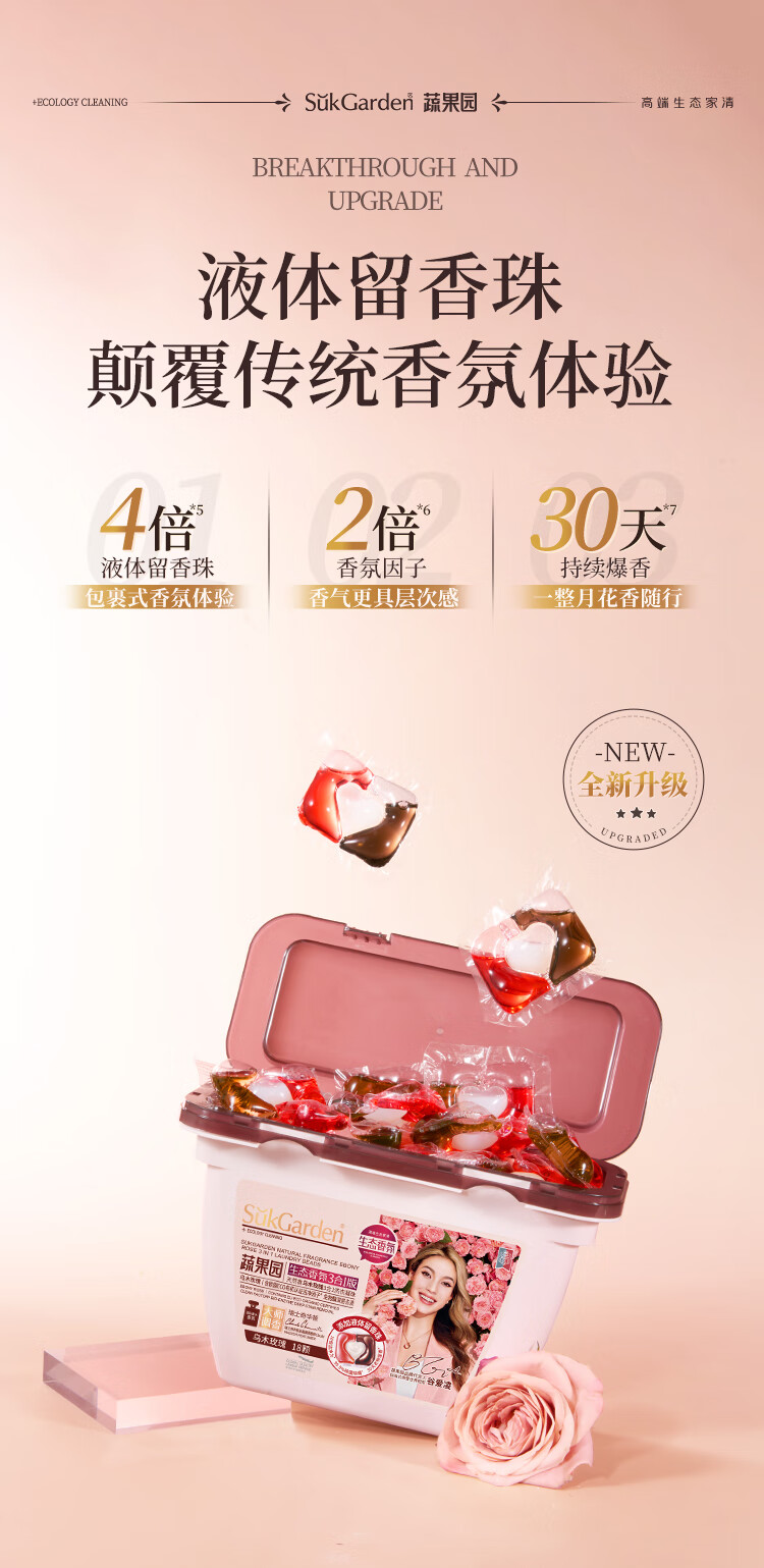 代发SGY0645蔬果园天然香乌木玫瑰3合1洗衣凝珠10g*18颗