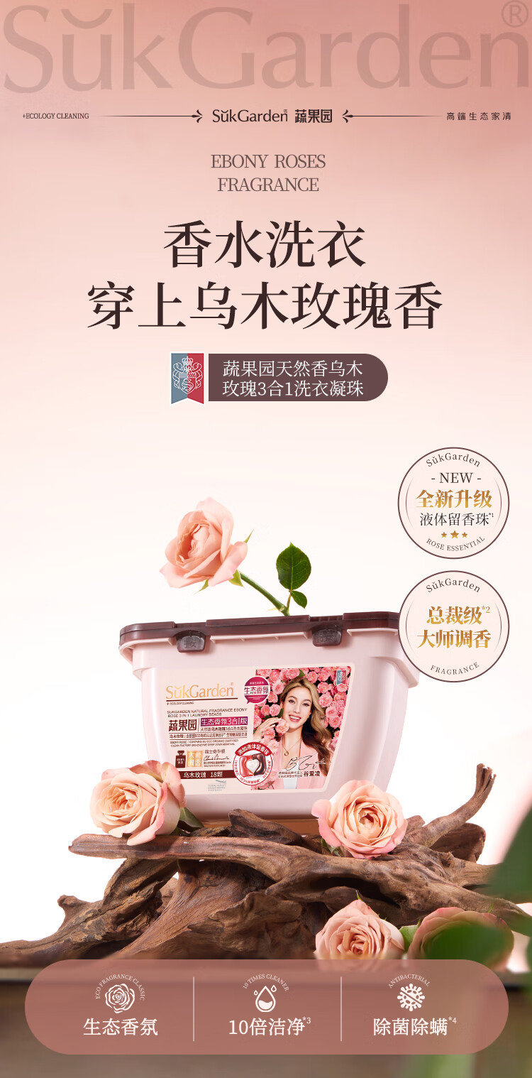 SGY0645蔬果园天然香乌木玫瑰3合1洗衣凝珠10g*18颗*1盒