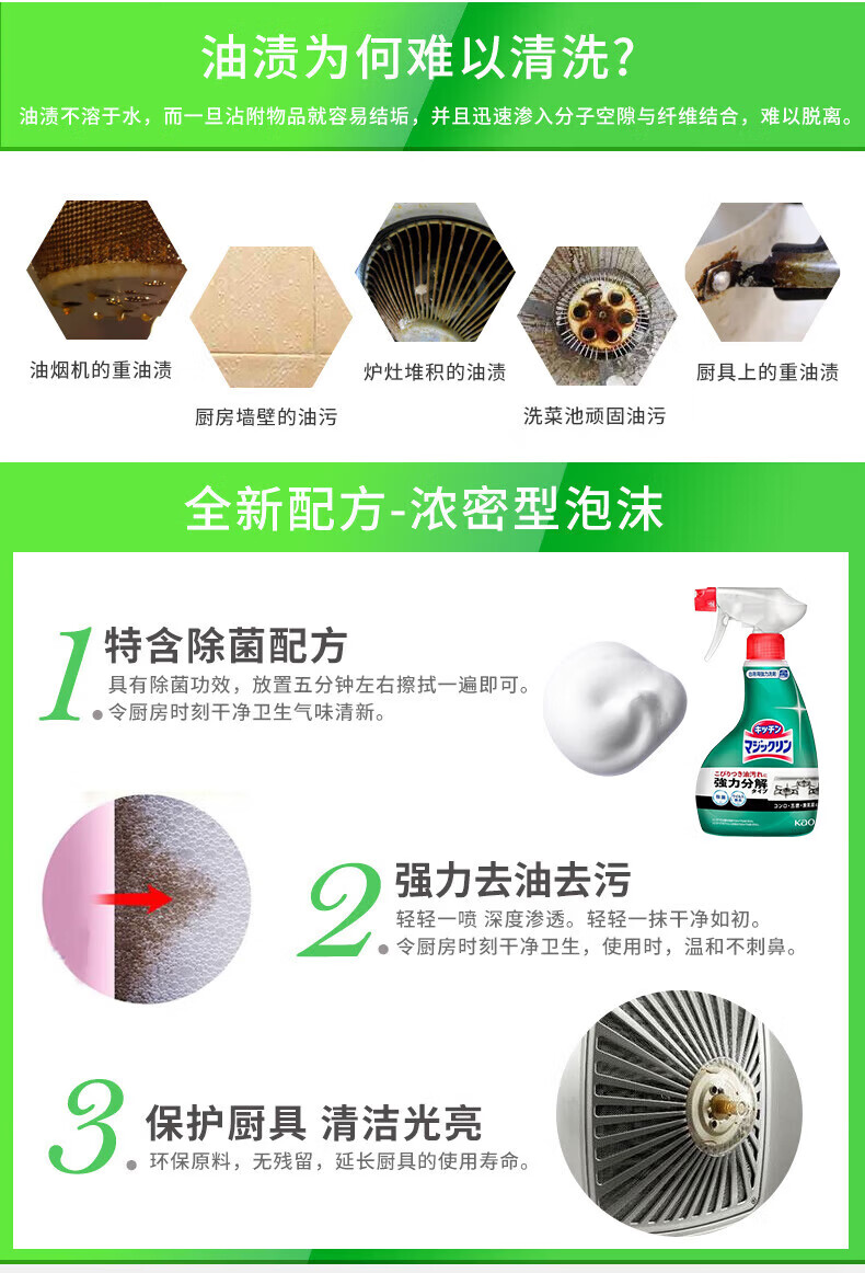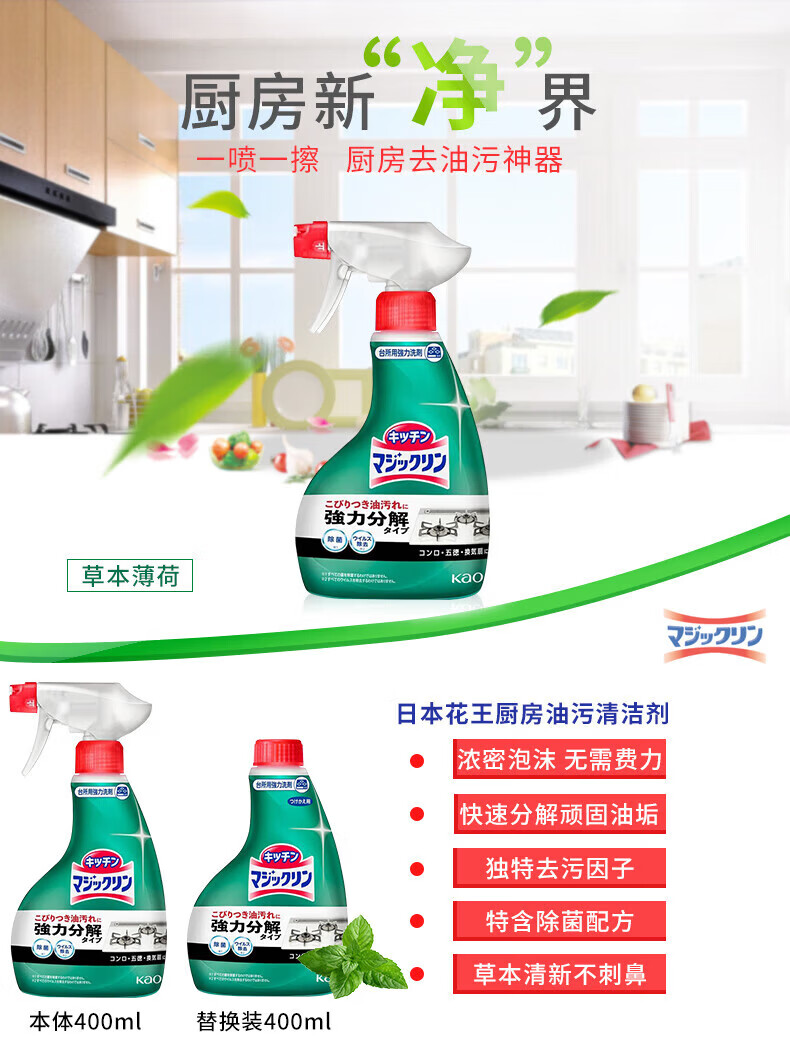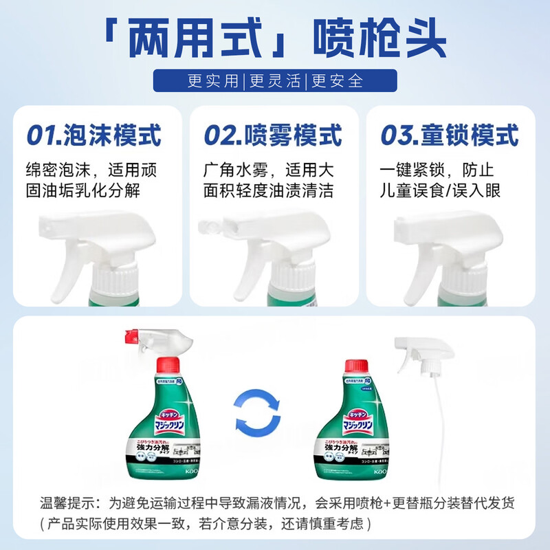 代发花王(kao)油污清洁喷雾1200ml【正装1+替换装2】 AJC056179