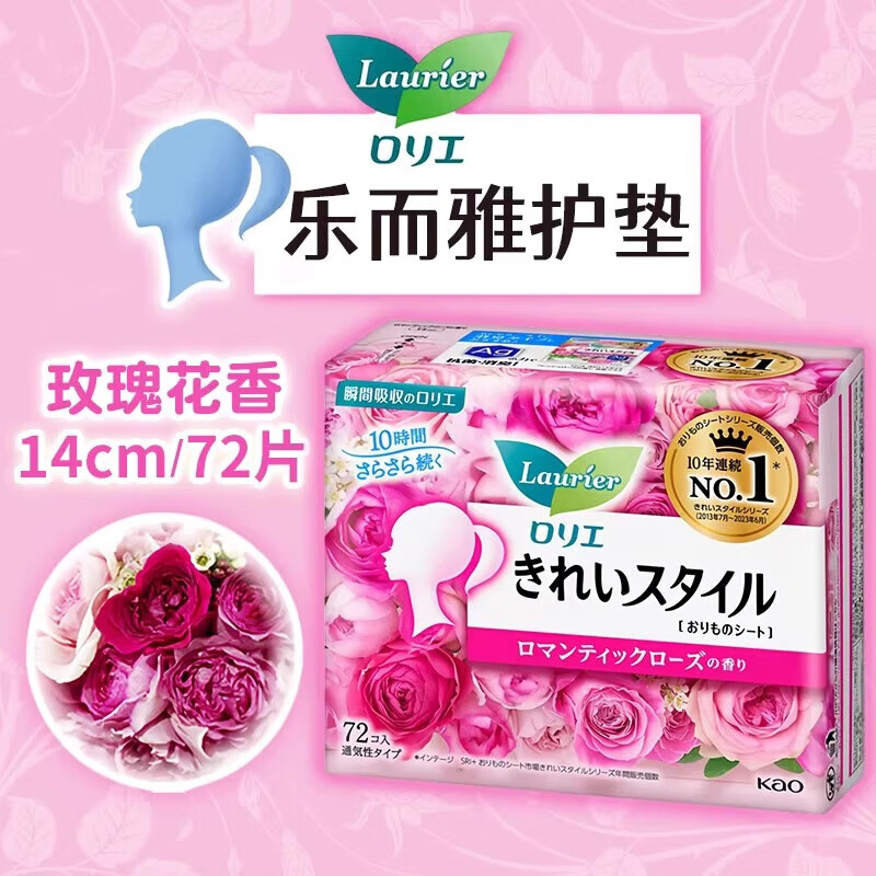 代发花王(kao)乐而雅瞬吸亲肤护垫14cm72枚/包-玫瑰 AJC056258