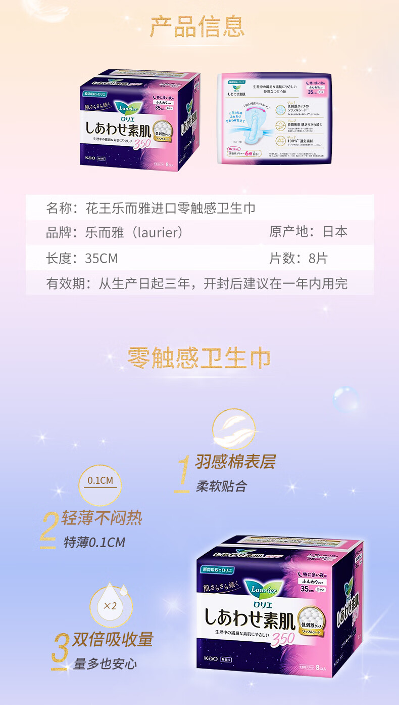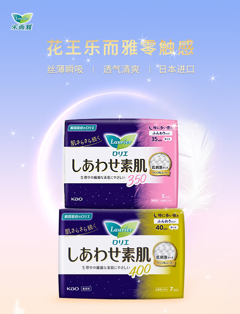 代发花王(kao)乐而雅F敏感肌透气系列卫生巾35cm8枚/包 AJC050008