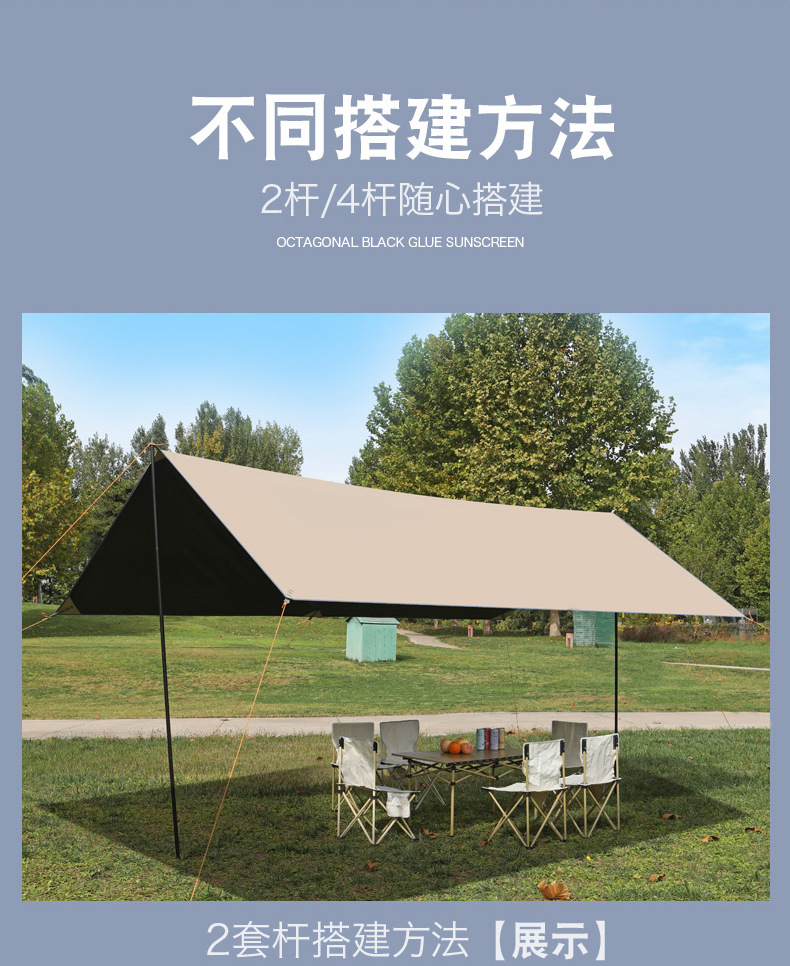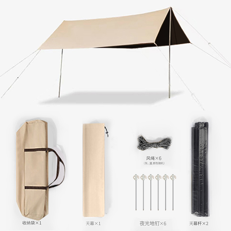 1天幕2收纳包3风绳*6 4夜光地钉*6 5天幕杆*2