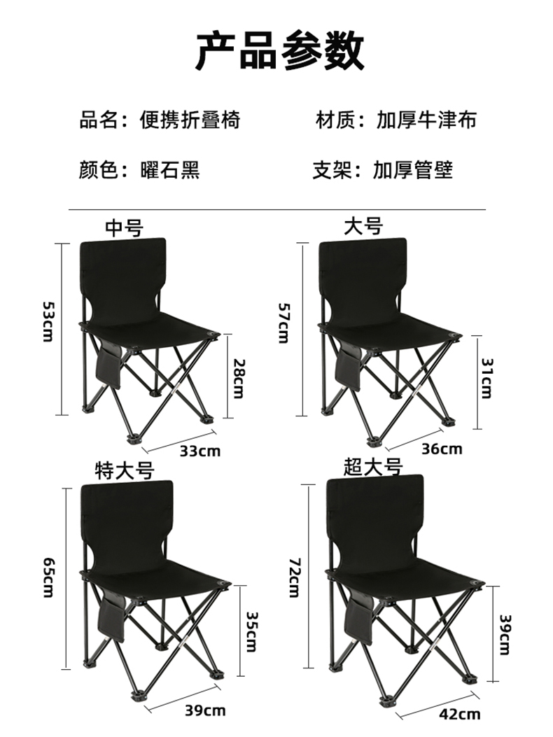 源头路悠悠黑色折叠椅(特大号L黑)ZC0739