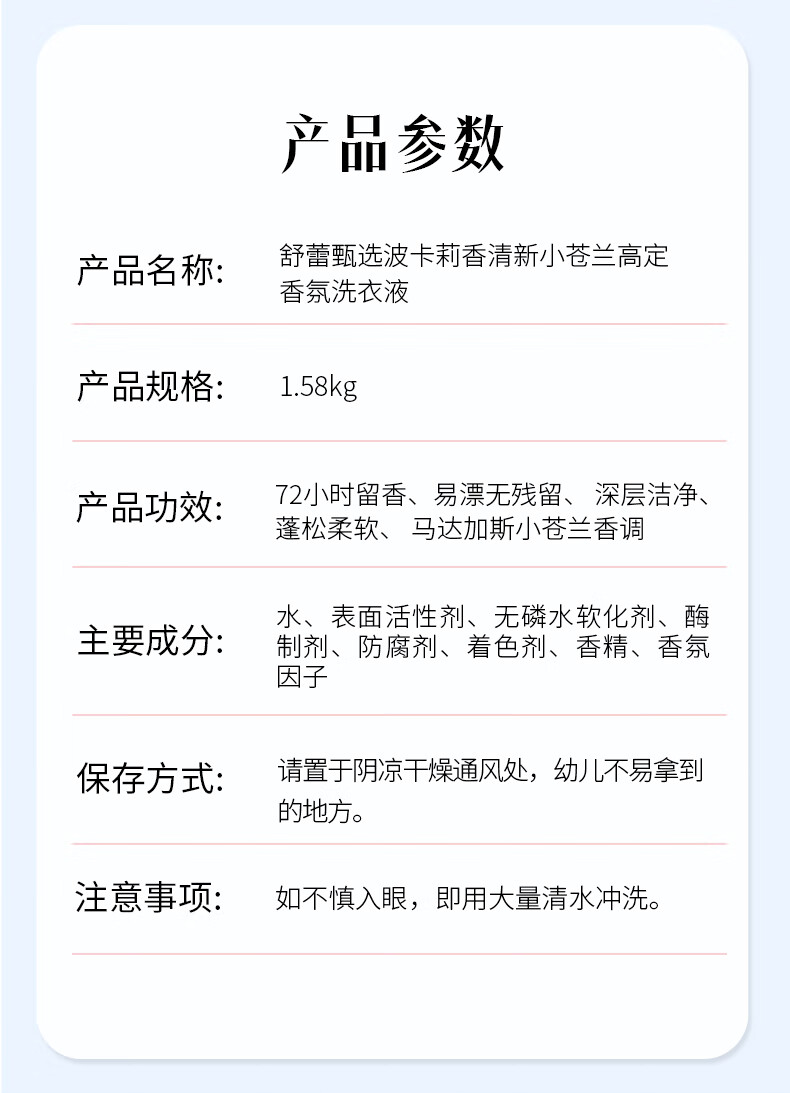 代发舒蕾 甄选波卡莉香清新小苍兰高定香氛洗衣液-1.58kg *1 BJC071604