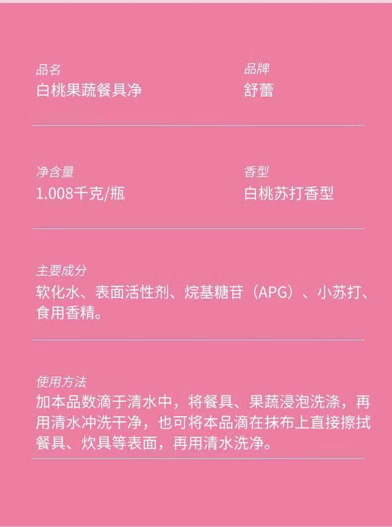 代发舒蕾 波卡莉香白桃果蔬餐具净1.008kg(电商盖+泵头)*1瓶 BJC072169