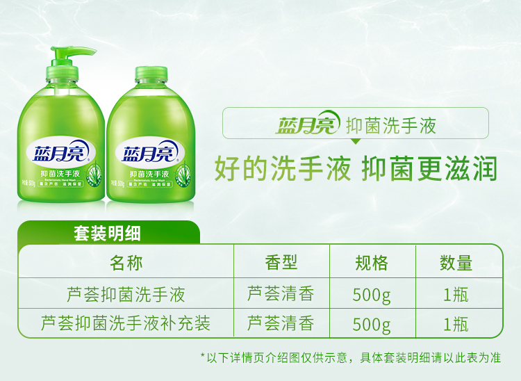 代发蓝月亮 抑菌洗手液500g+抑菌洗手液瓶补500g BJC08-10000119
