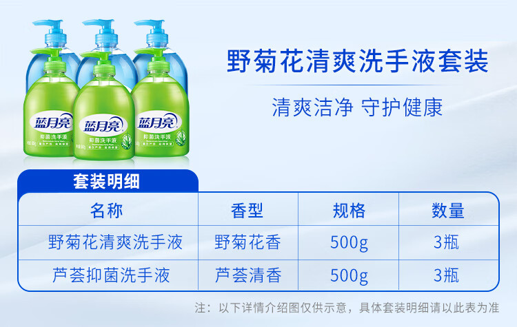 代发蓝月亮 芦荟洗手液500g*3+芦荟洗手液瓶补500g*3 BJC08-10001018