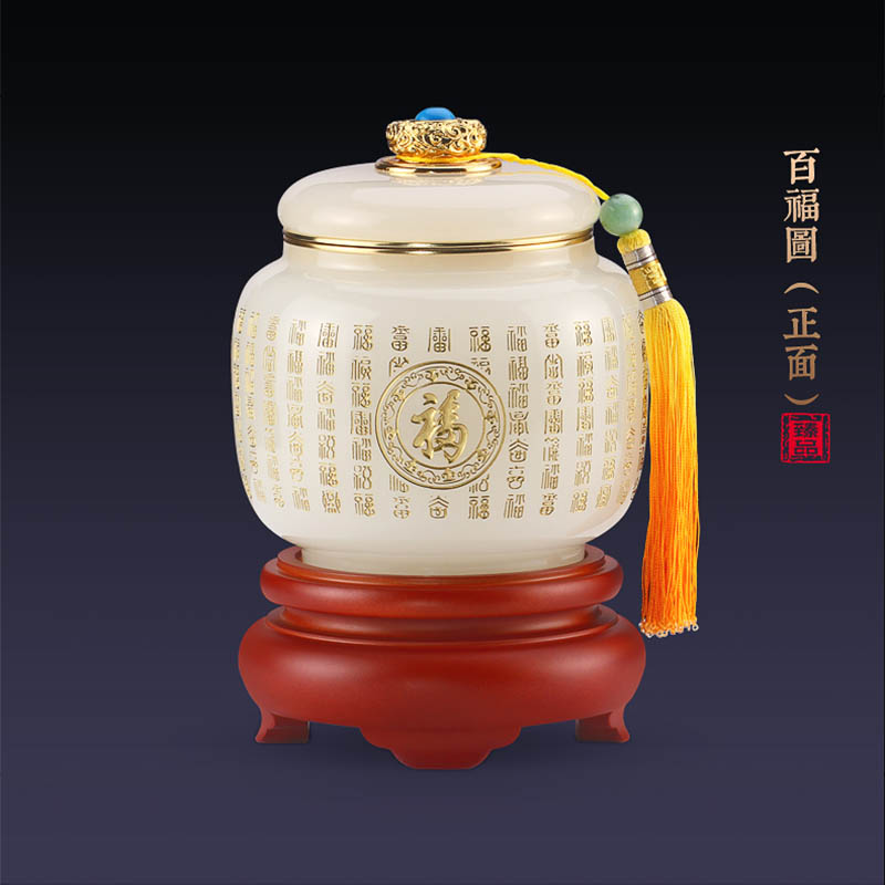 代发全锦DS-XCYG003茶叶罐琉璃摆件雕刻茶缸存茶家用好友礼品送领导新居乔迁定制