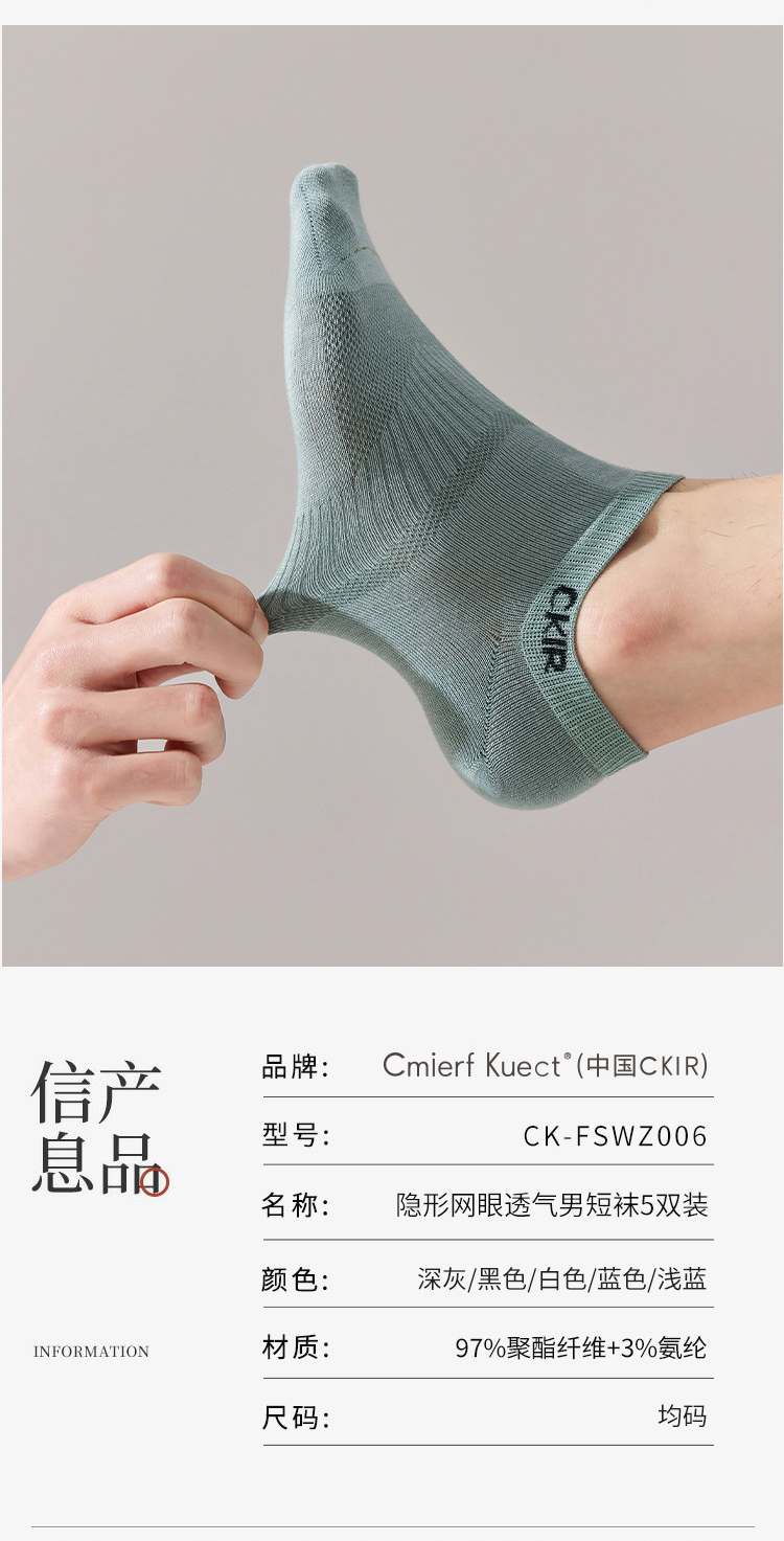 代发Cmierf Kuect (中国CKIR) 透气舒适男短袜 CKIR-FSWZ006均码混色(袋)