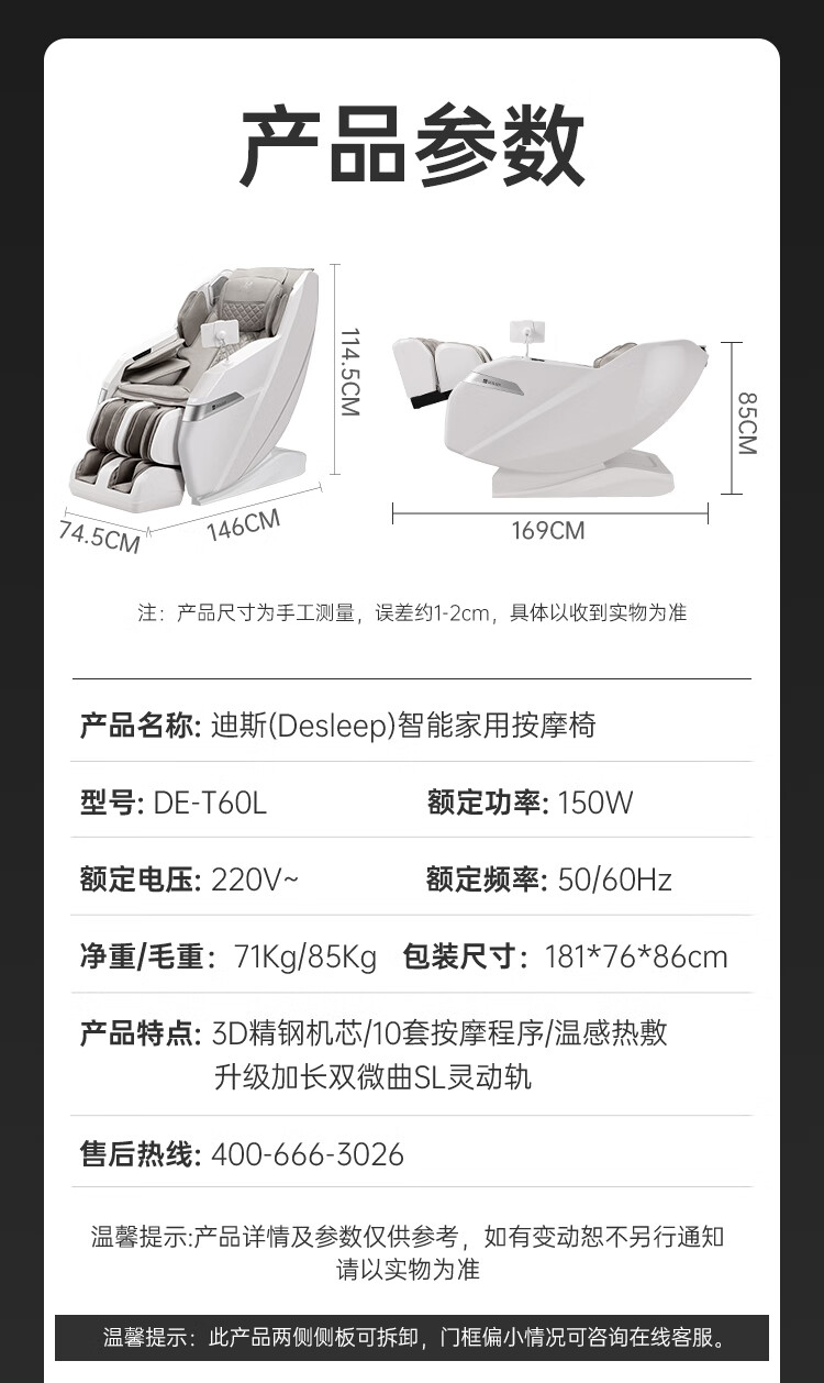 当前位置:首页 > 家用电器 > 个护电器 > 按摩椅 > 迪斯【CE认证】T60L按摩椅家用全身太空舱多功能零重力智能电动按摩椅机器人送父母生日节日礼物 DE-T60L