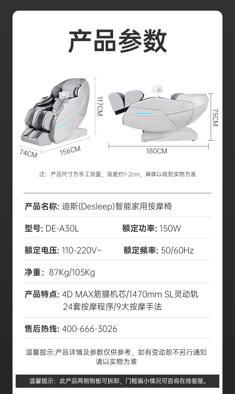 源头迪斯按摩椅家用智能电动按摩沙发 多功能全自动零重力4D机芯DE-A30L 生日礼物推荐送父母长辈 A30L深眠舱