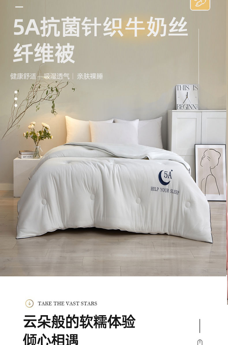 荐代发雅鹿5A抗菌针织牛奶丝纤维被 YLBX096 白色 200*230cm/5斤 春秋被