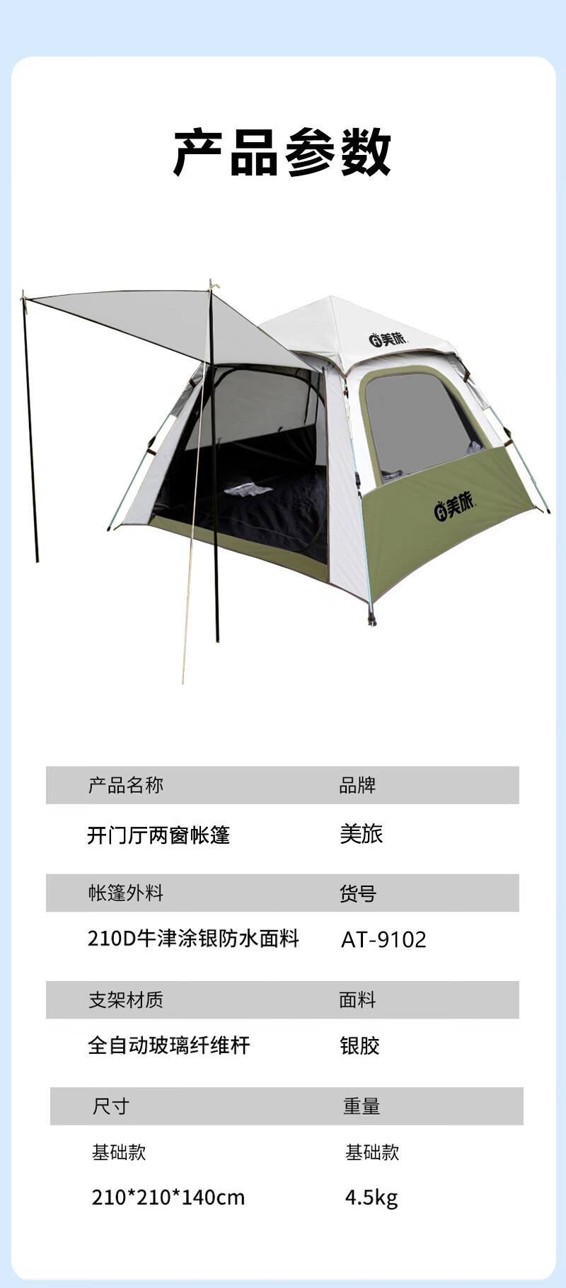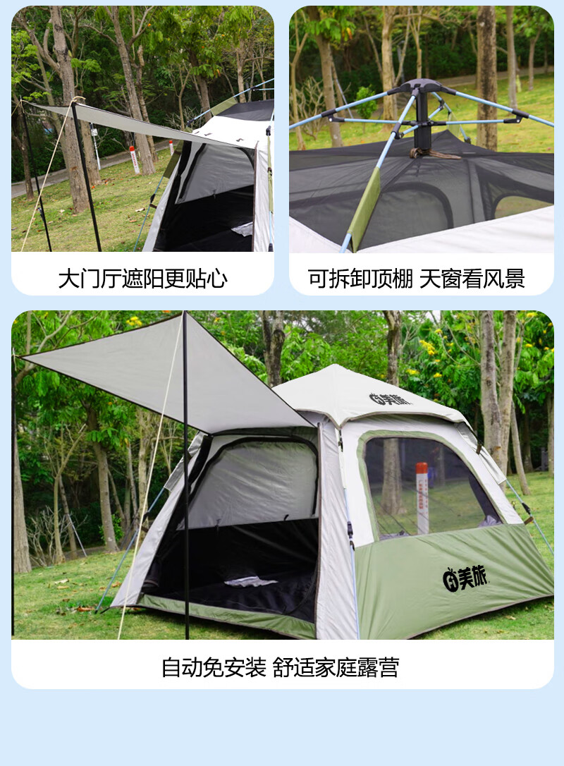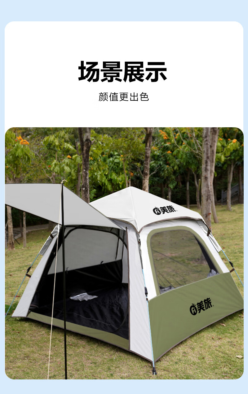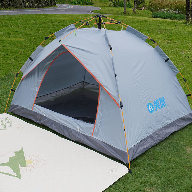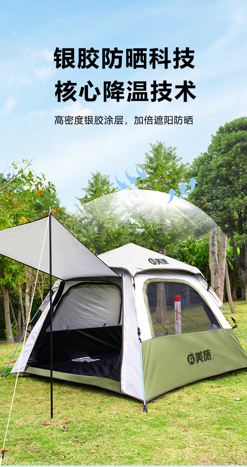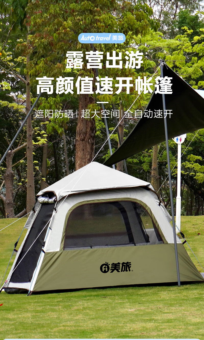 代发美旅自驾户外野营折叠全自动帐篷3-4人沙滩简易速开双人防雨露营帐篷 两门银胶帐篷AT-9101