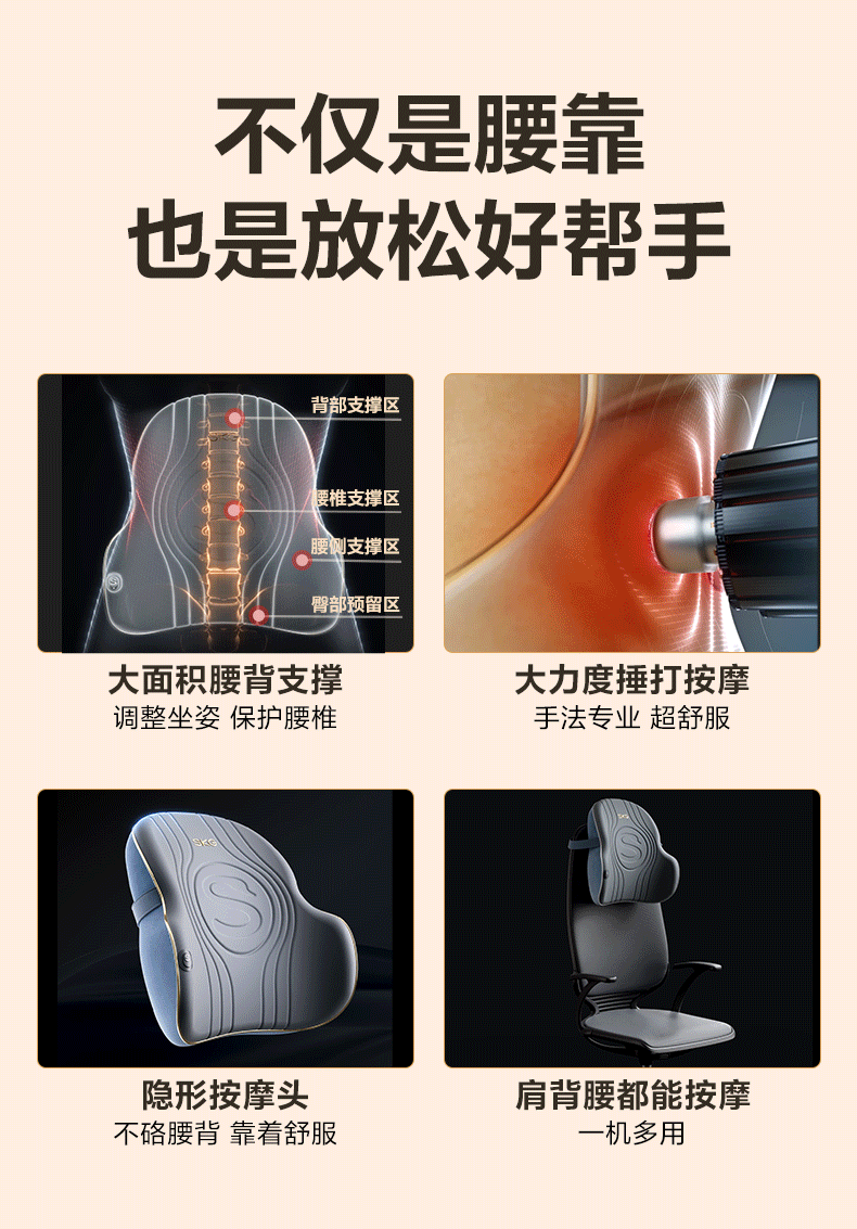 代发SKG按摩腰靠T3时尚蓝色