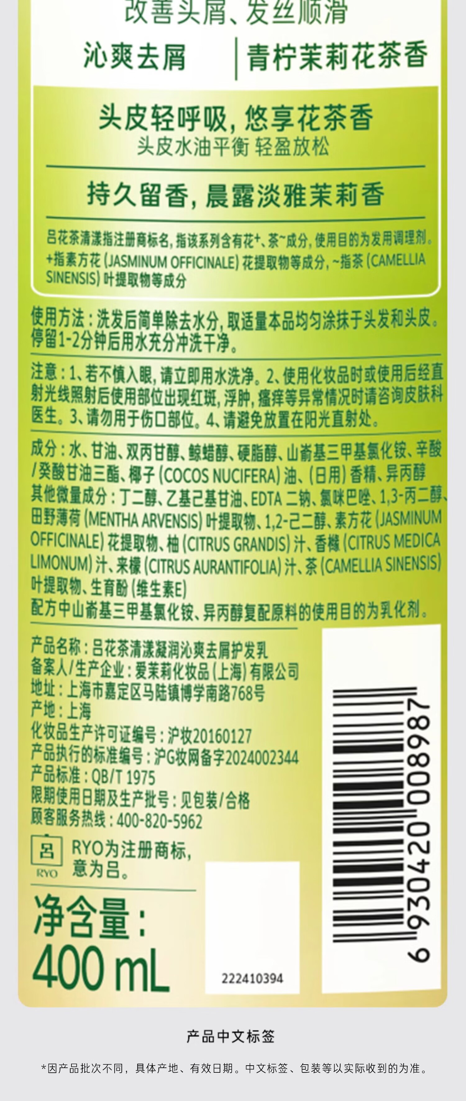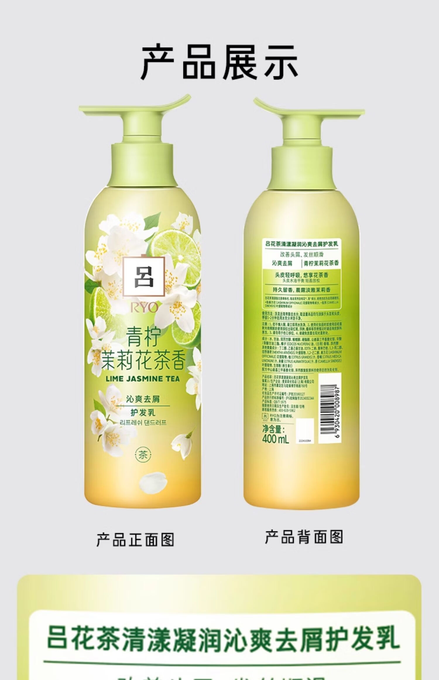 代发吕(Ryo)花茶清漾凝润沁爽去屑护发乳(青柠茉莉)400ml AJC108987
