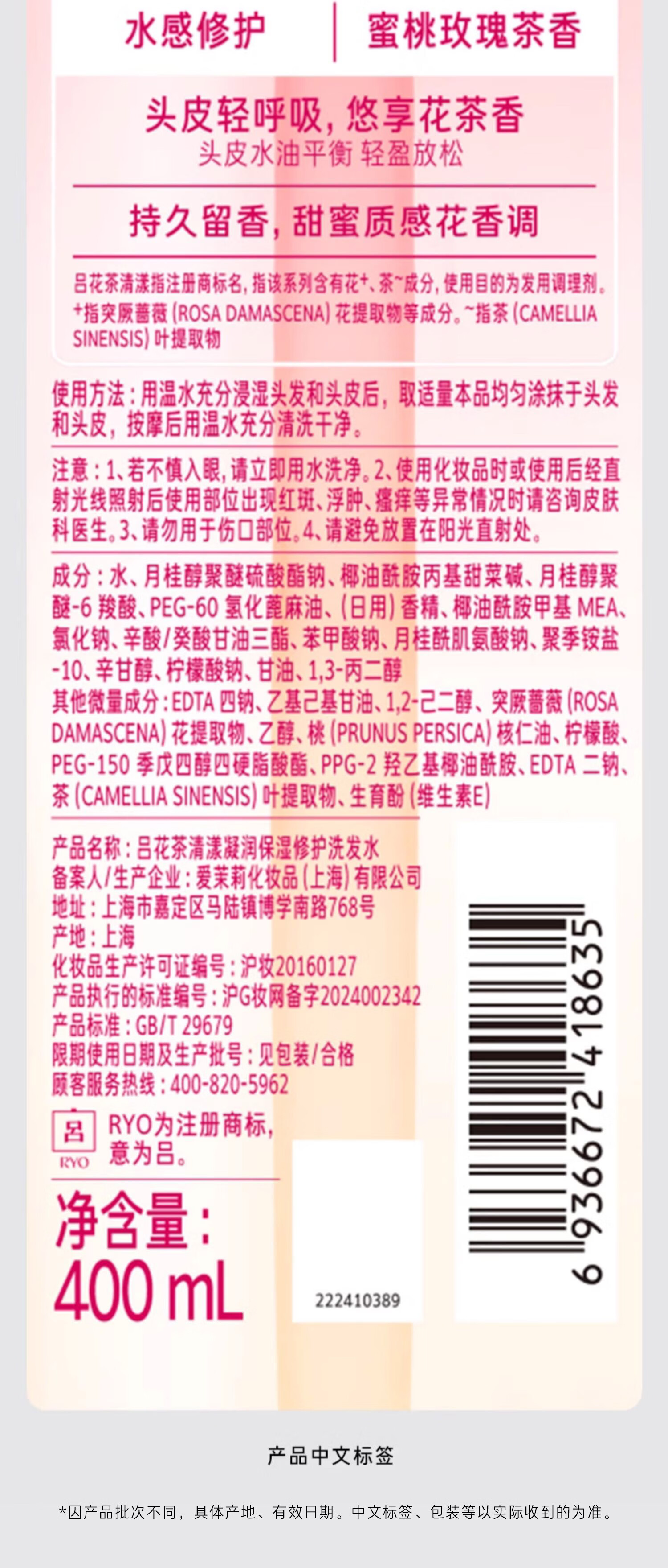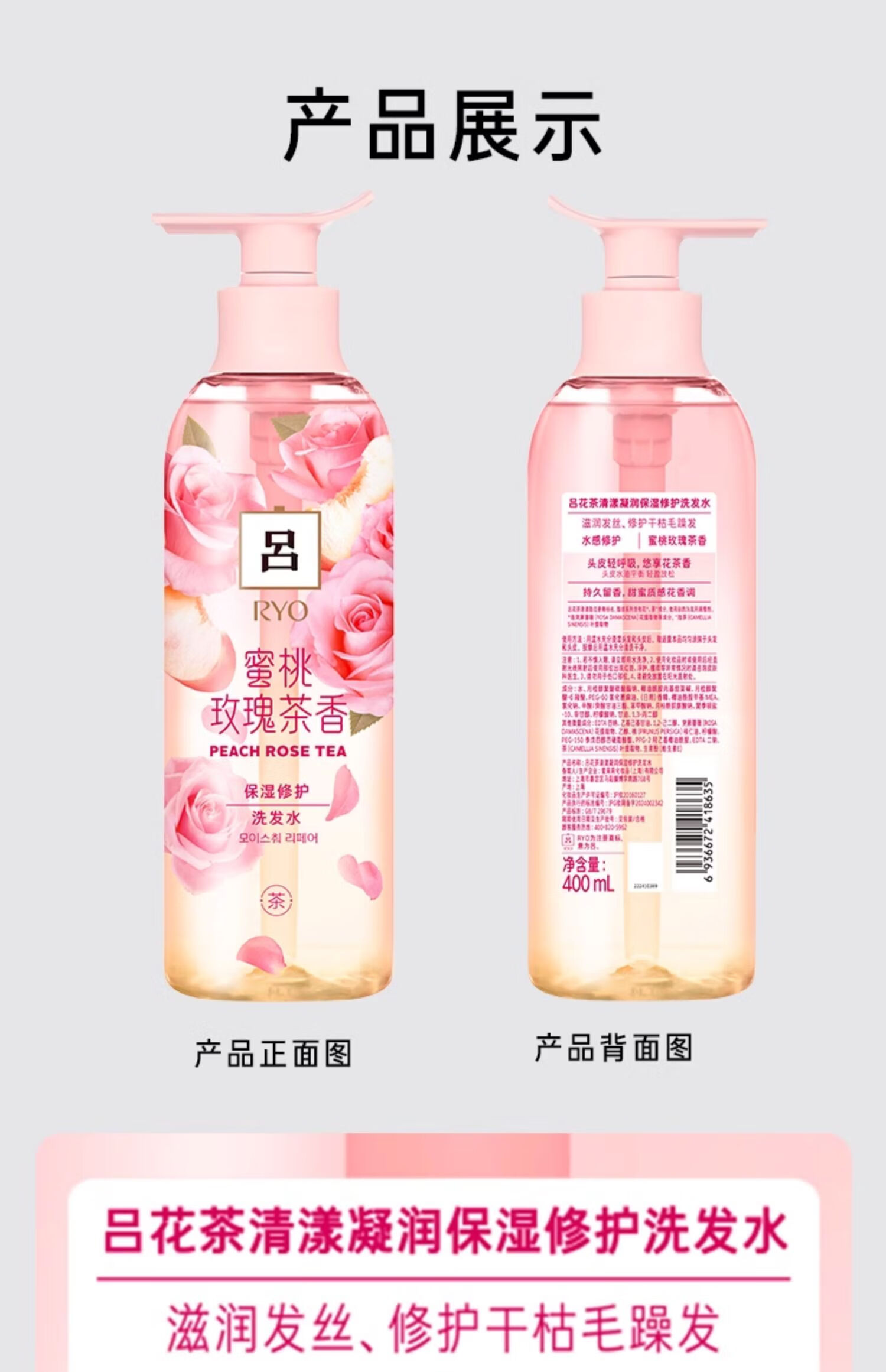 代发吕(Ryo)花茶清漾凝润保湿修护洗发水(蜜桃玫瑰)400ml AJC108635