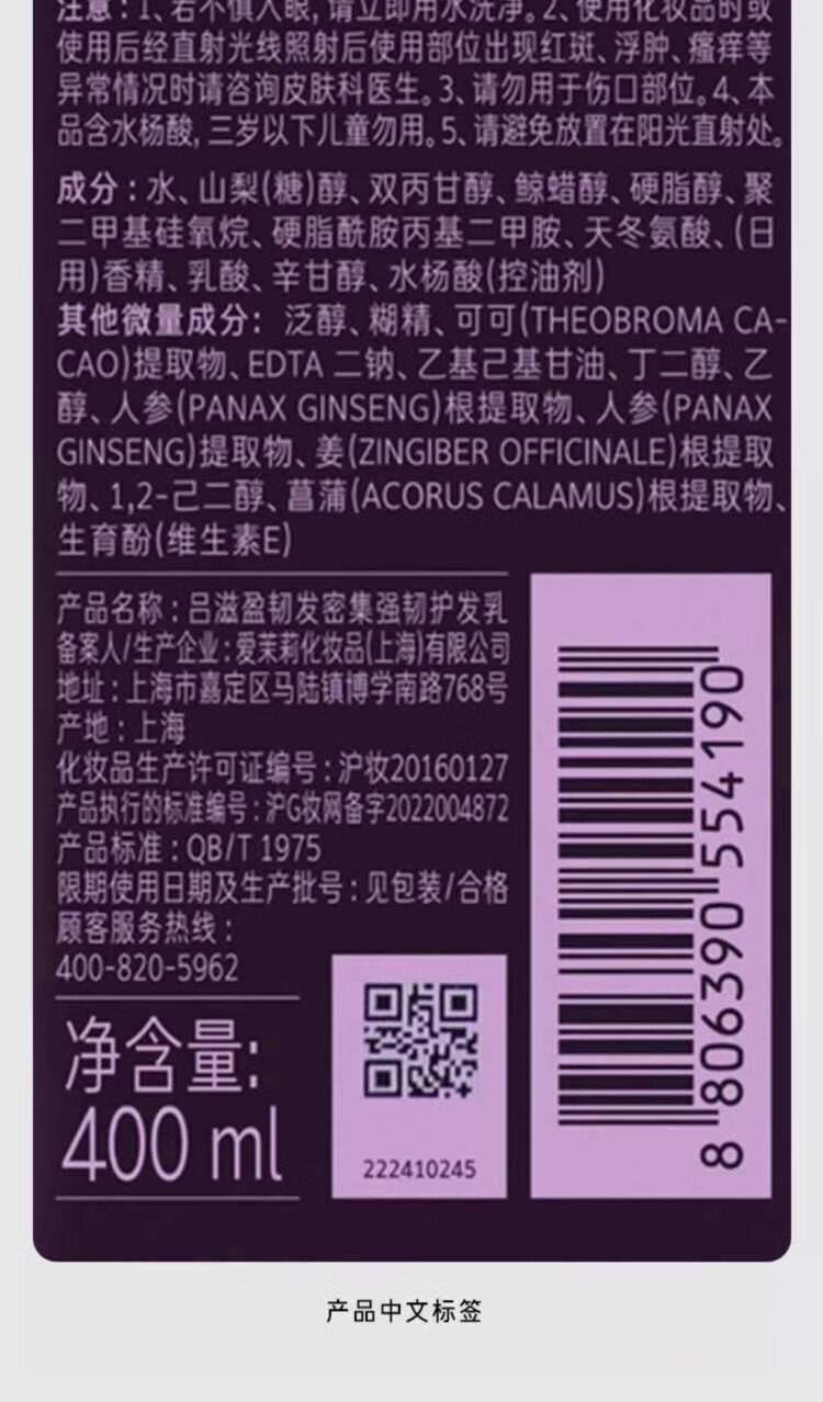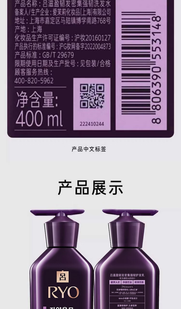 代发吕(Ryo)滋盈韧发密集强韧护发乳400ml AJC104190
