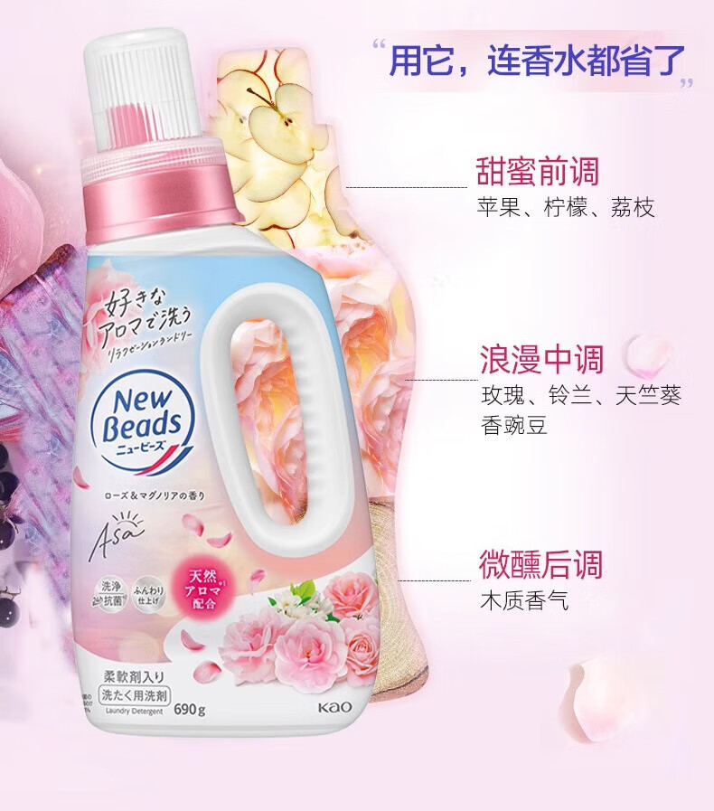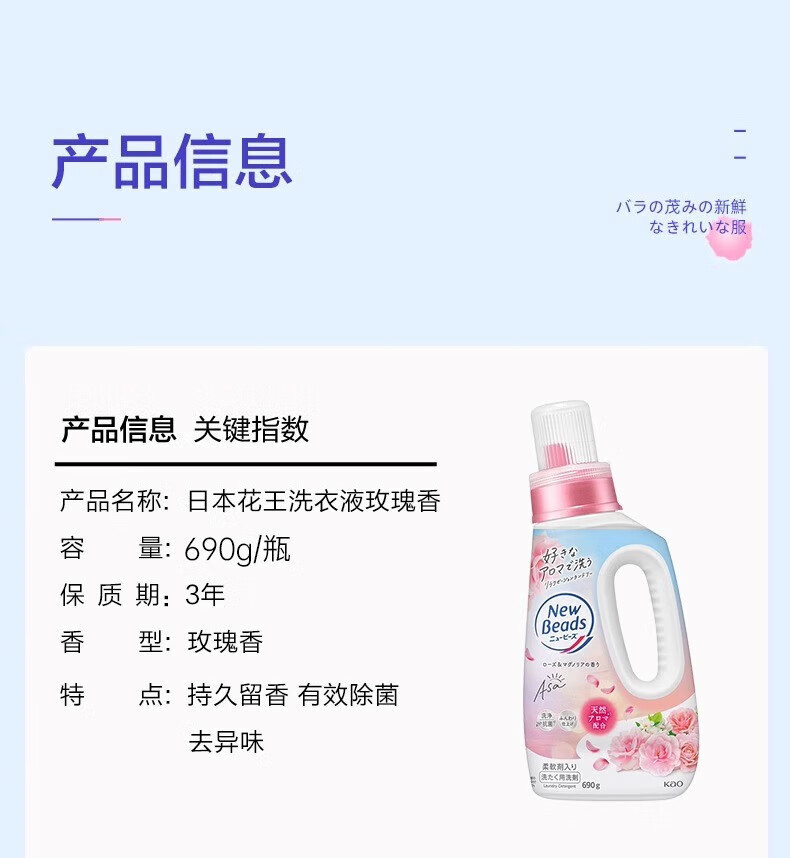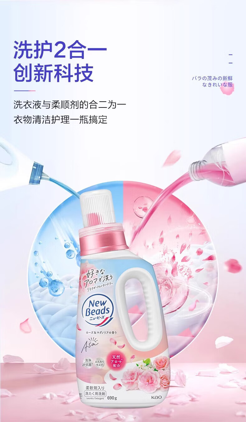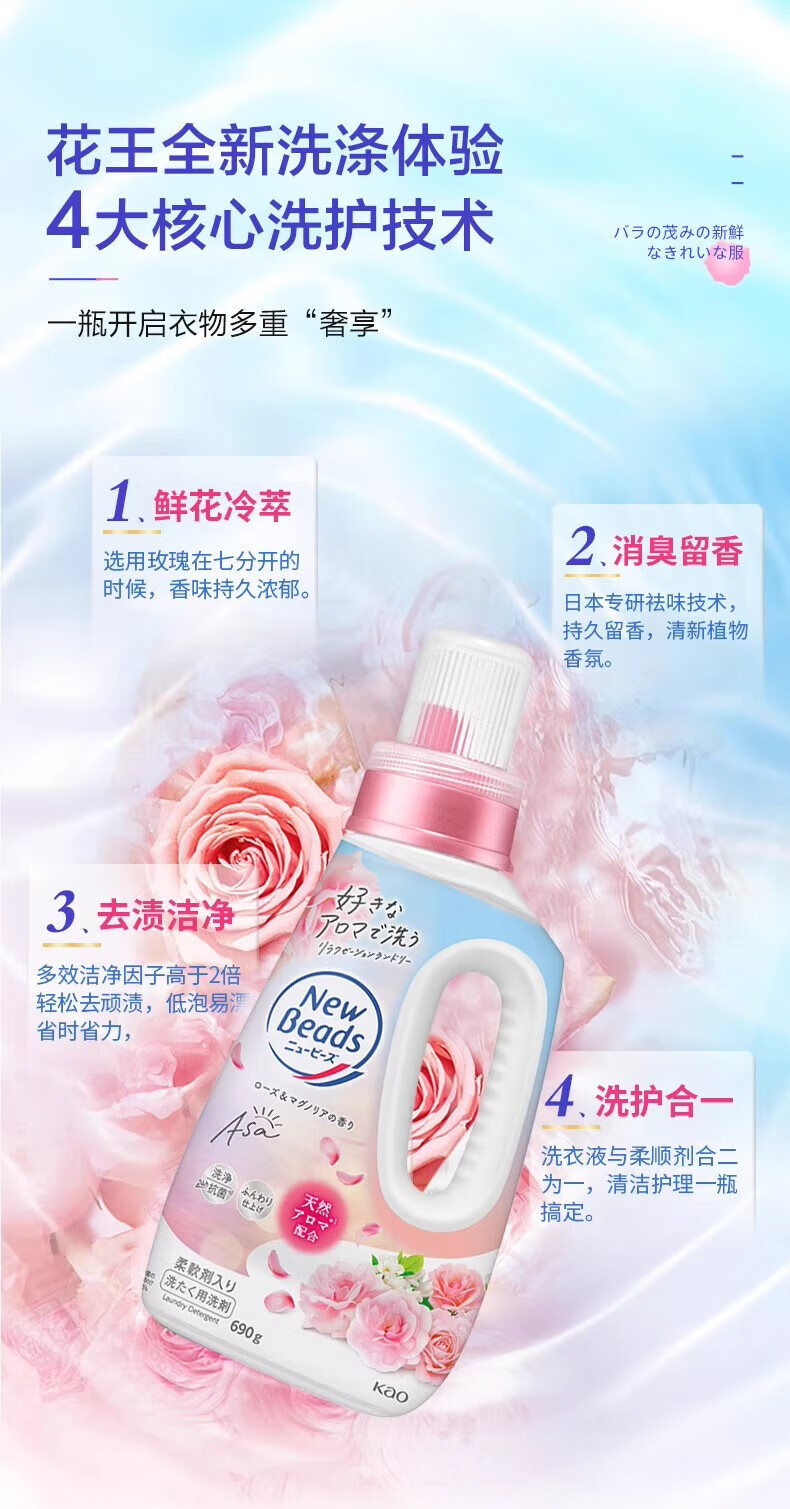 代发花王(kao)newbeads洗衣液690g-玫瑰香*2瓶 AJC058019