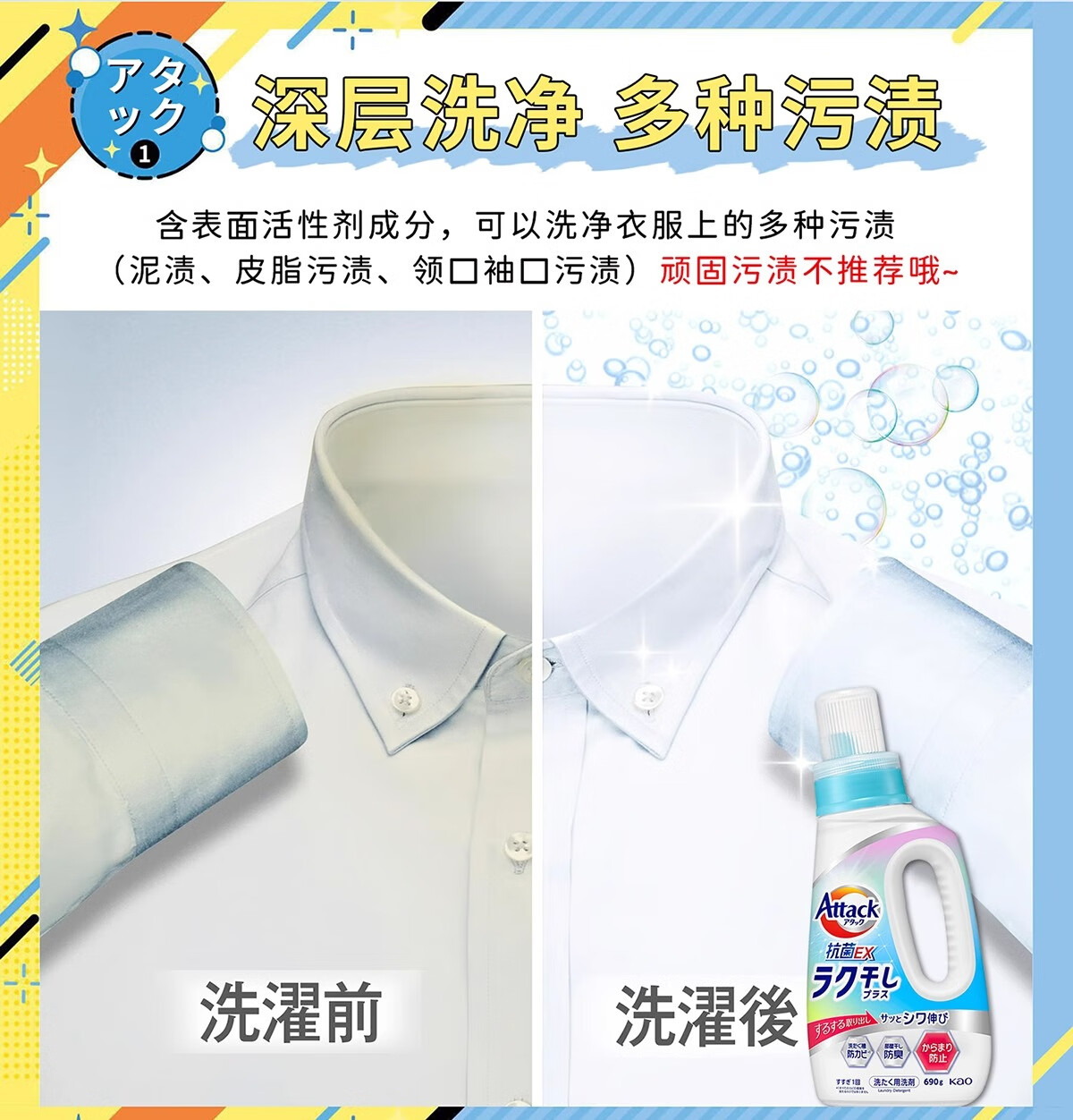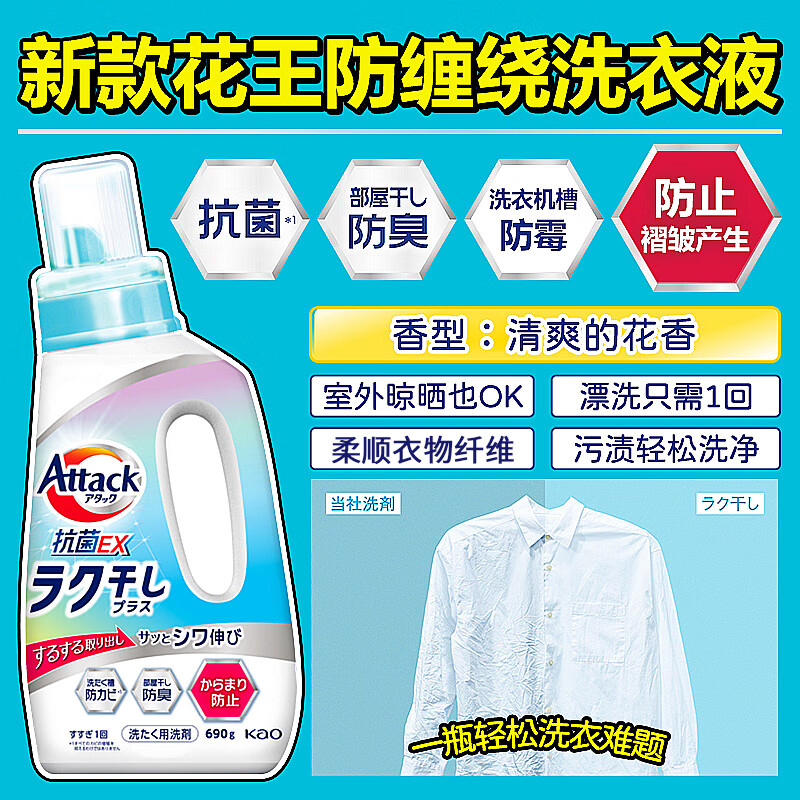 代发花王(kao)Attack洗衣液抗菌EX690ml (蓝色新版) AJC052612