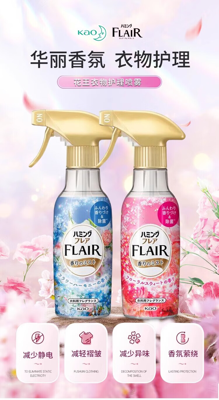 代发花王(kao)Flair衣物香氛防静电柔顺喷雾270ml AJC056876