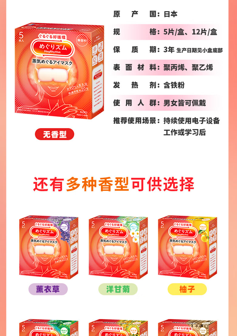 代发花王(kao)MegRhythm美舒律蒸汽眼罩12片装*2盒-柚子香 AJC058036