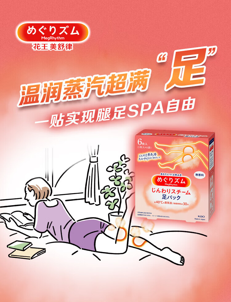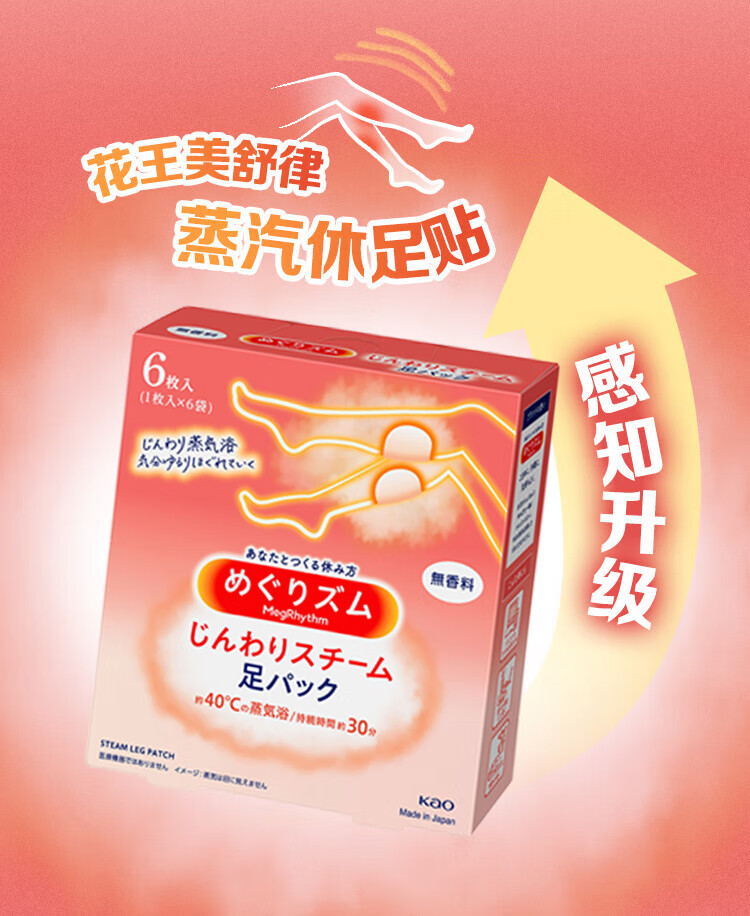 代发花王(kao)MegRhythm美舒律蒸汽腿足发热贴6片装-无香 AJC056961