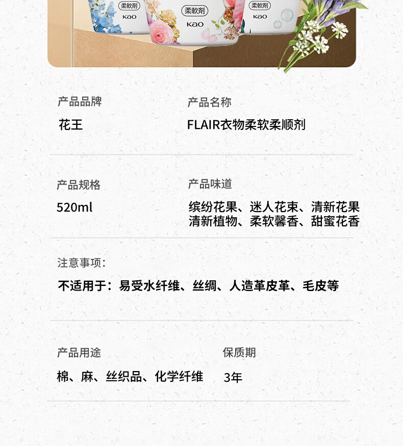 代发花王(kao)Flair衣物护理柔顺剂520ml甜蜜花香味 AJC057769