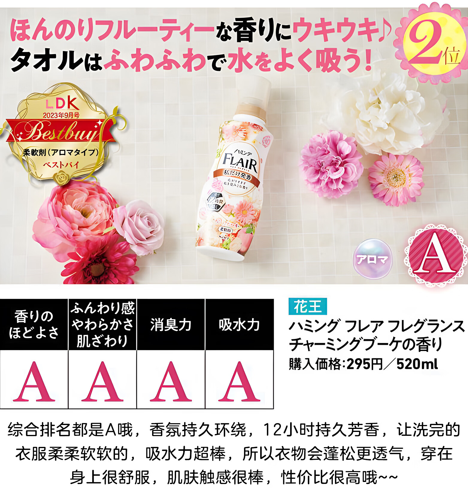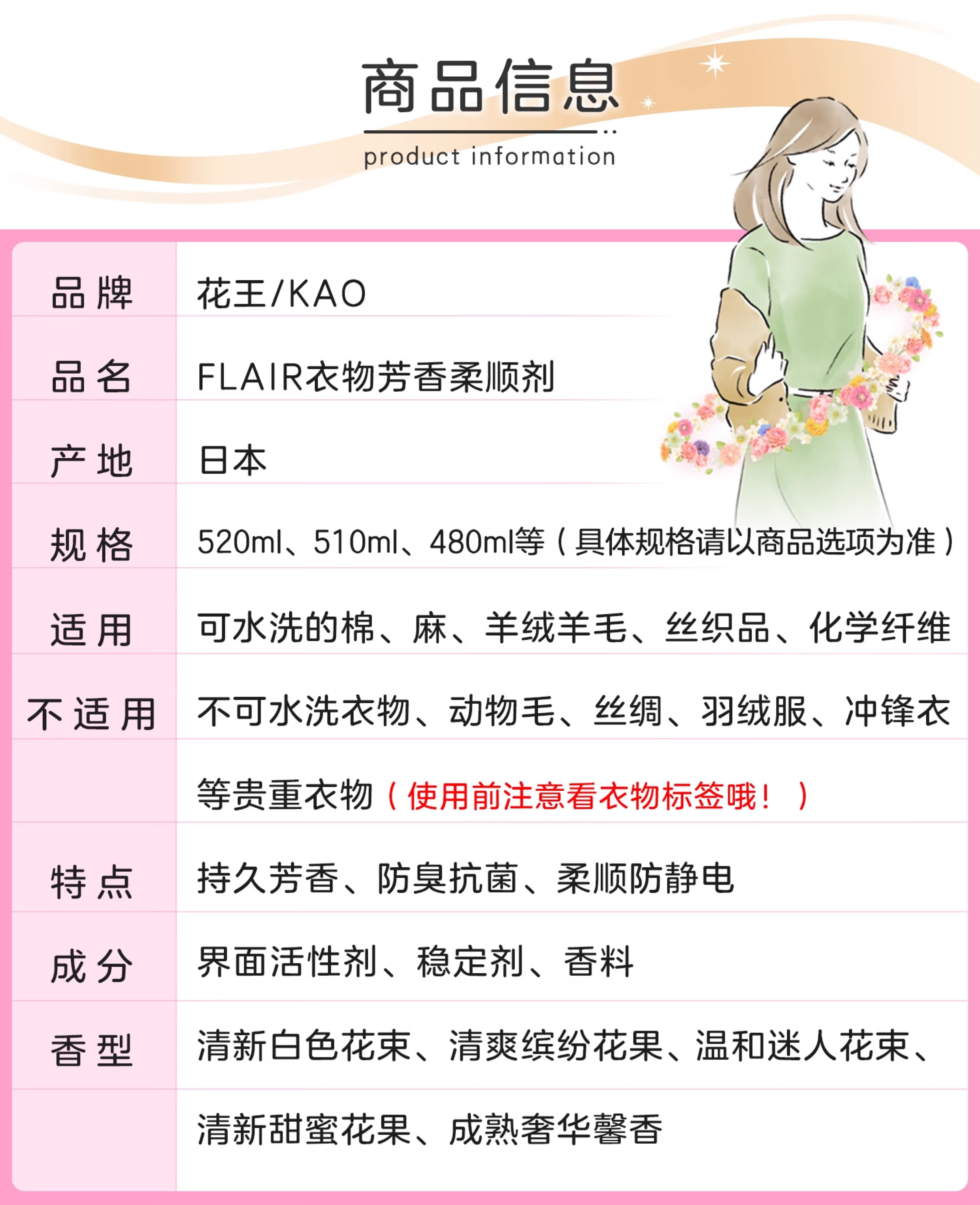 代发花王(kao)Flair衣物护理柔顺剂520ml都市花香 AJC054454