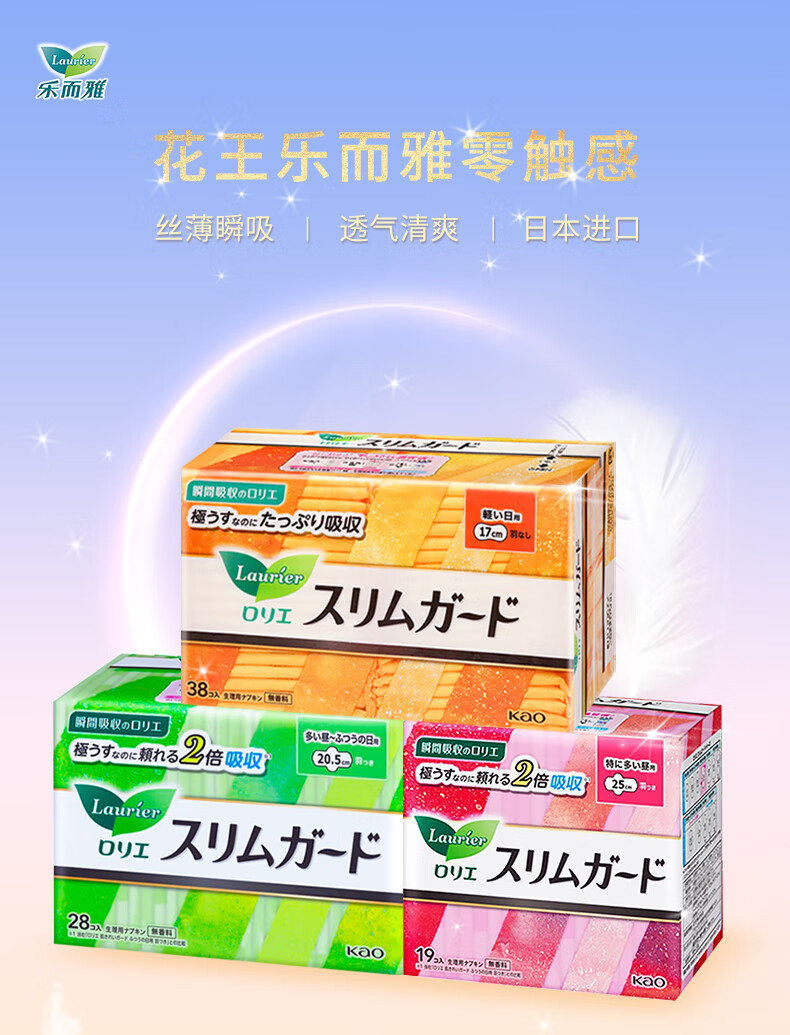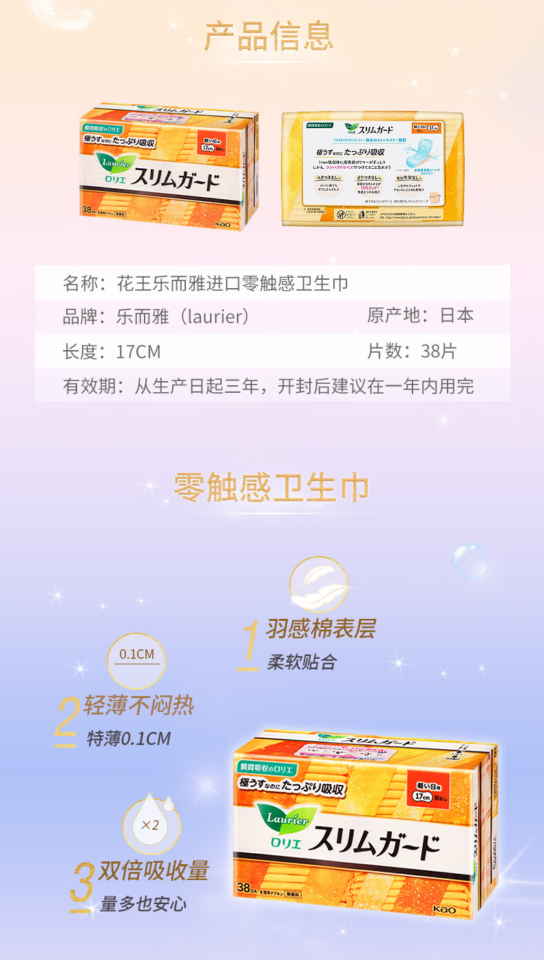 代发花王(kao)乐而雅S零触感超薄系列卫生巾17cm38枚/包 AJC054269