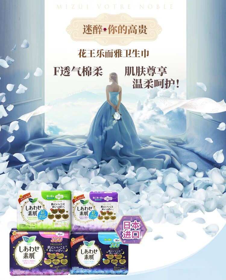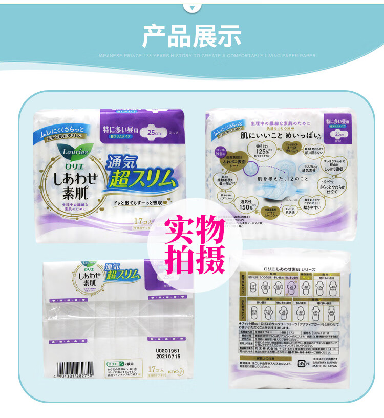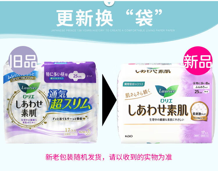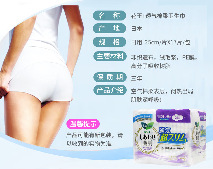 代发花王(kao)乐而雅F敏感肌透气系列卫生巾25cm17枚/包-丝薄款 AJC052750