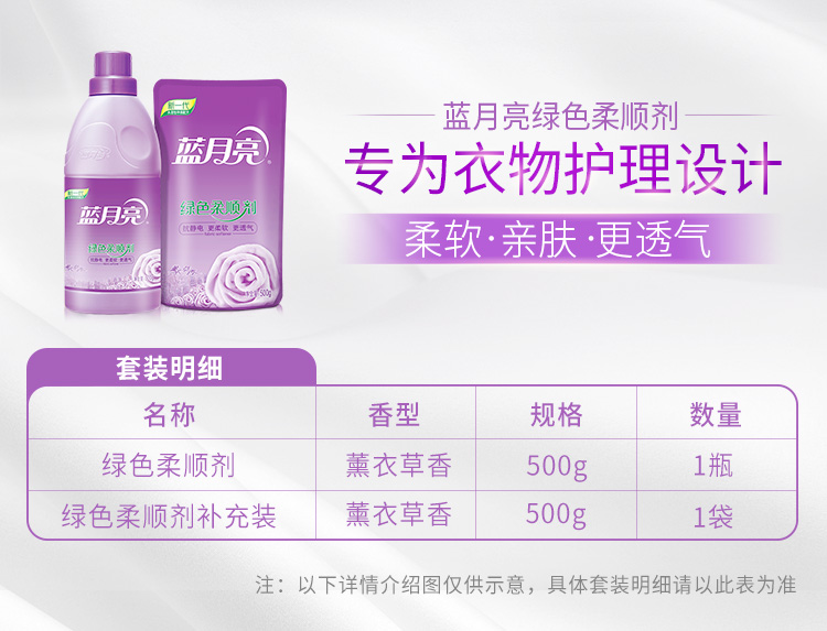 代发蓝月亮 薰柔顺剂瓶500g+袋500g BJC08-81000853