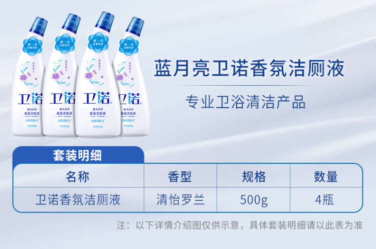 代发蓝月亮 卫诺清怡罗兰洁厕液500g*4 BJC08-81000405