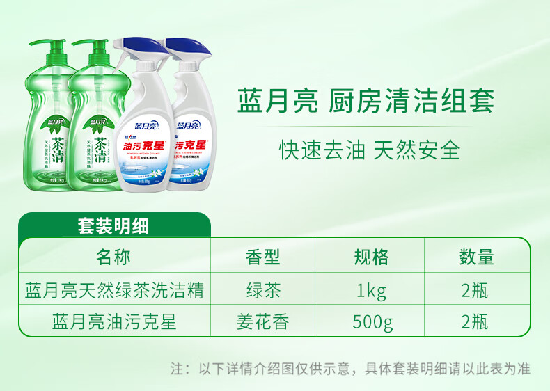代发蓝月亮 厨卫组合:茶清1kg*2+青柠油污克星500g+青柠油污克星瓶补500g BJC08-81000818