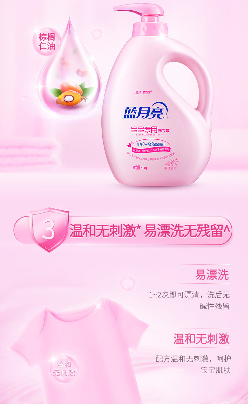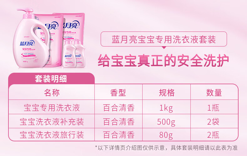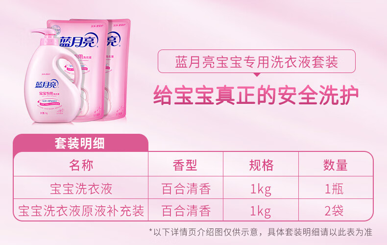 代发蓝月亮 宝宝洗衣组合:百合宝宝洗衣液瓶1kg+袋500g*2+百合80g*2 BJC08-81000834